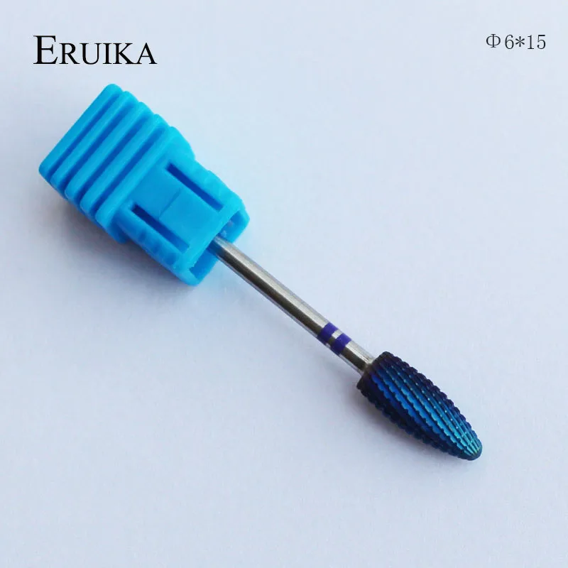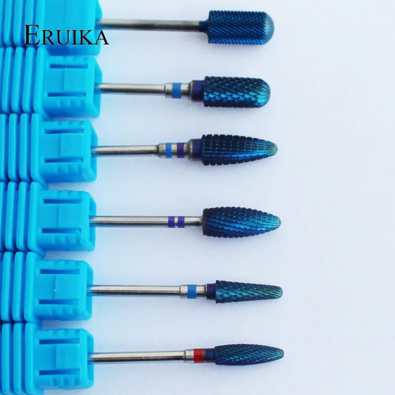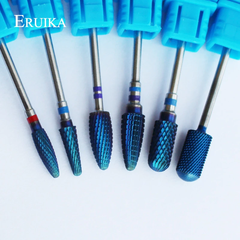 Вольфрамовые карбидные нанофрезы ERUIKA, 6 типов, голубые, с нанопокрытием, Металлические фрезы для маникюра, аксессуары для ногтей, фрезы для ногтей