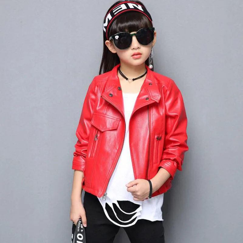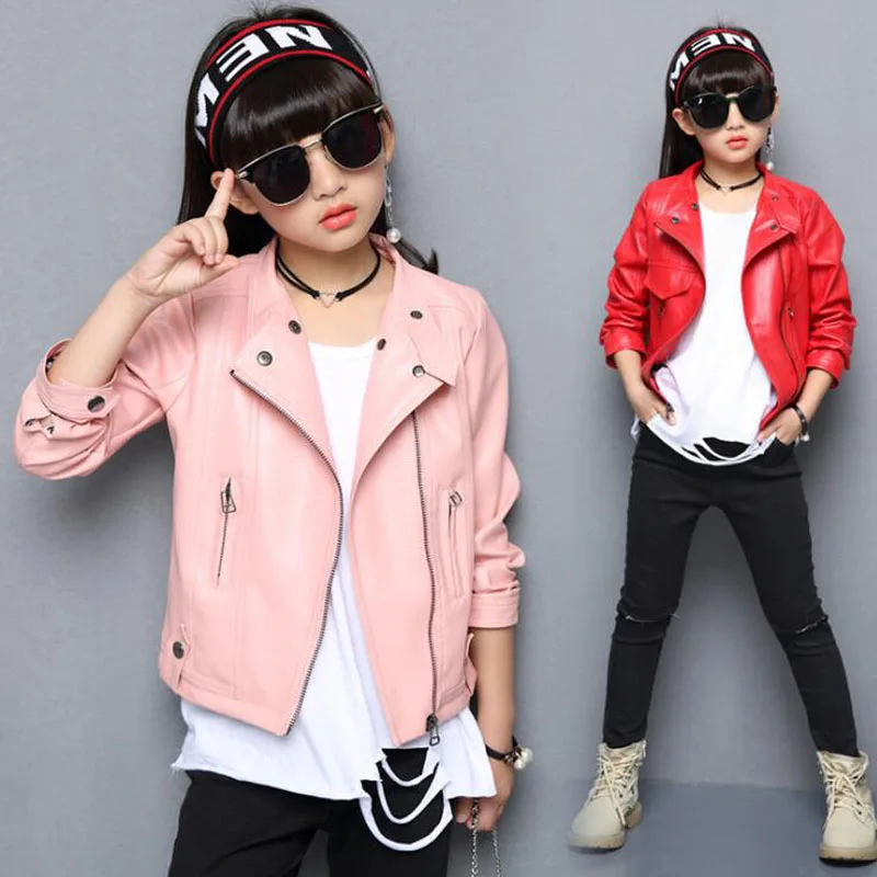 Модные Куртки из искусственной кожи для девочек; Новинка 2017 года; Сезон осень-весна; Детское пальто; От 4 до 13 лет; Детская верхняя одежда