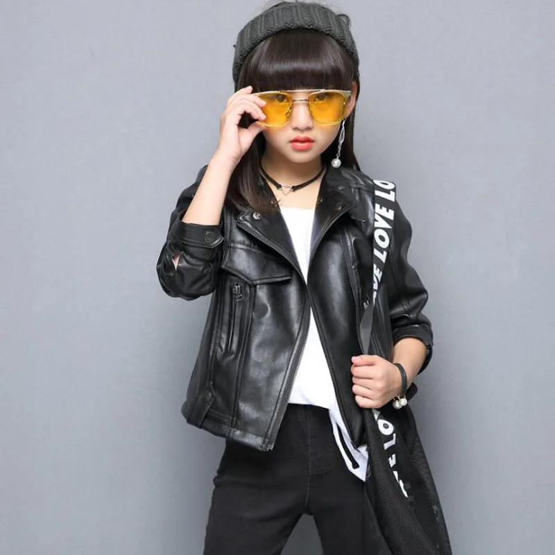 Модные Куртки из искусственной кожи для девочек, новинка 2021, осенне-весеннее Детское пальто, детская верхняя одежда