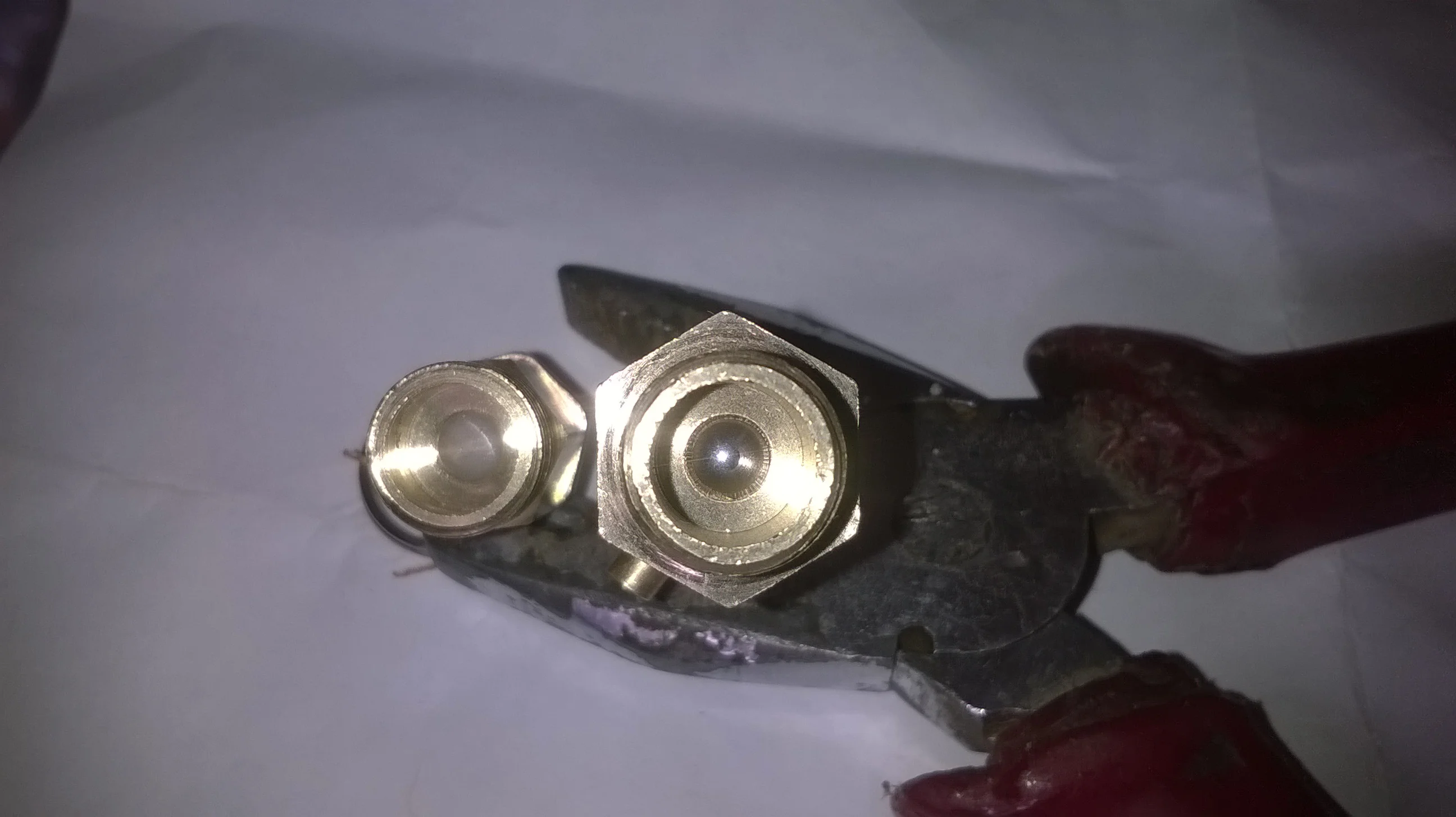 Небольшой, из латуни. Запирается металлическим шариком. Отверстие для стравливания небольшое.