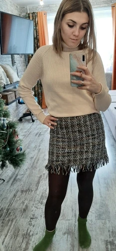 Прекрасная юбка - очень плотная, качество материала прекрасное. Учтите, что все соответствует размерной сетке - сидит плотно, ткань не тянущаяся, поэтому внимательно замерьте свои параметры для точного выбора.