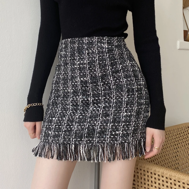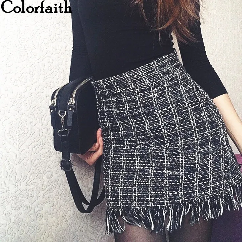 Colorfaith 2022, винтажная, клетчатая, с кисточками, корейская мода, твид, Скейтер, сексуальная, клетчатая, весна-лето, Женская шерстяная мини-юбка SK5583
