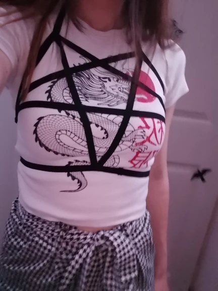 Черный бондаж, готический укороченный топ, жгуты в форме пентаграмм...