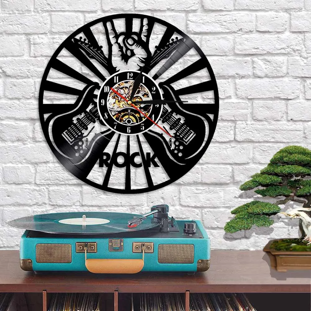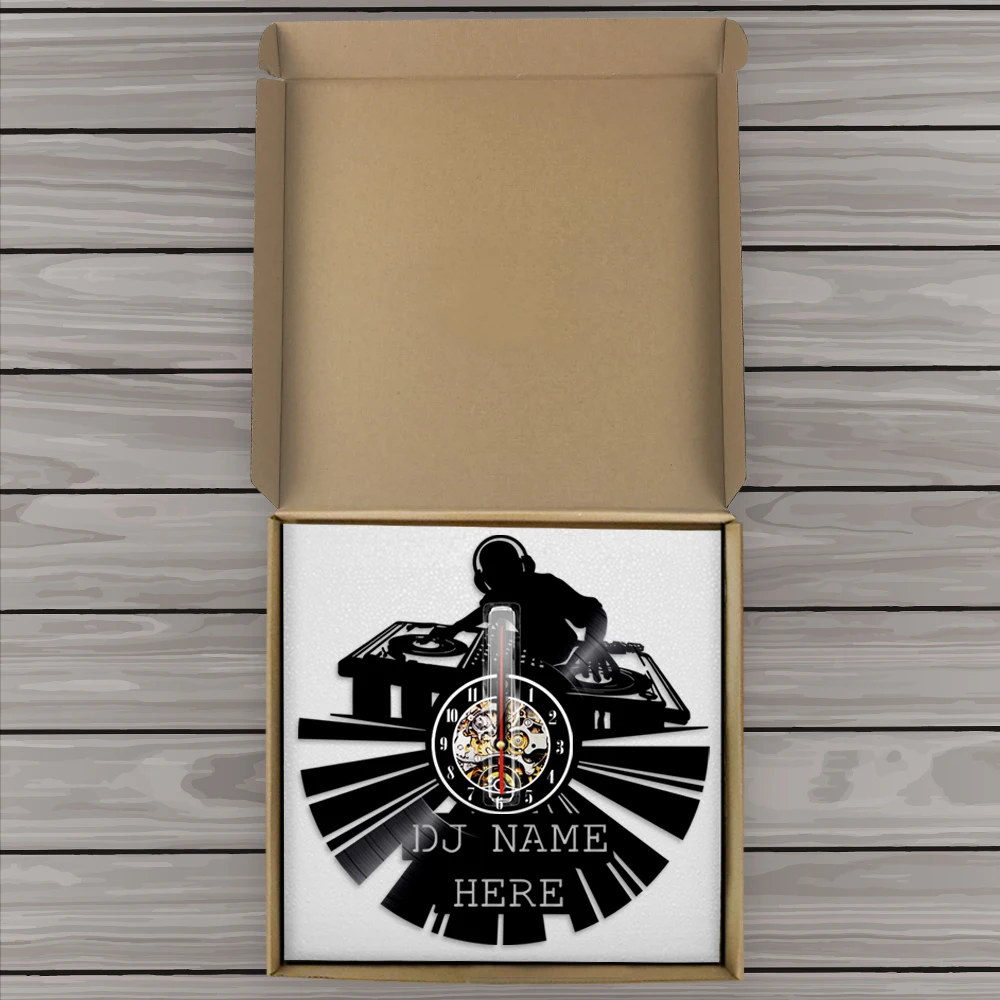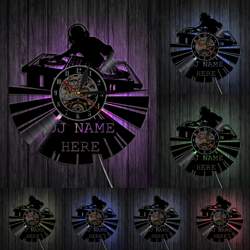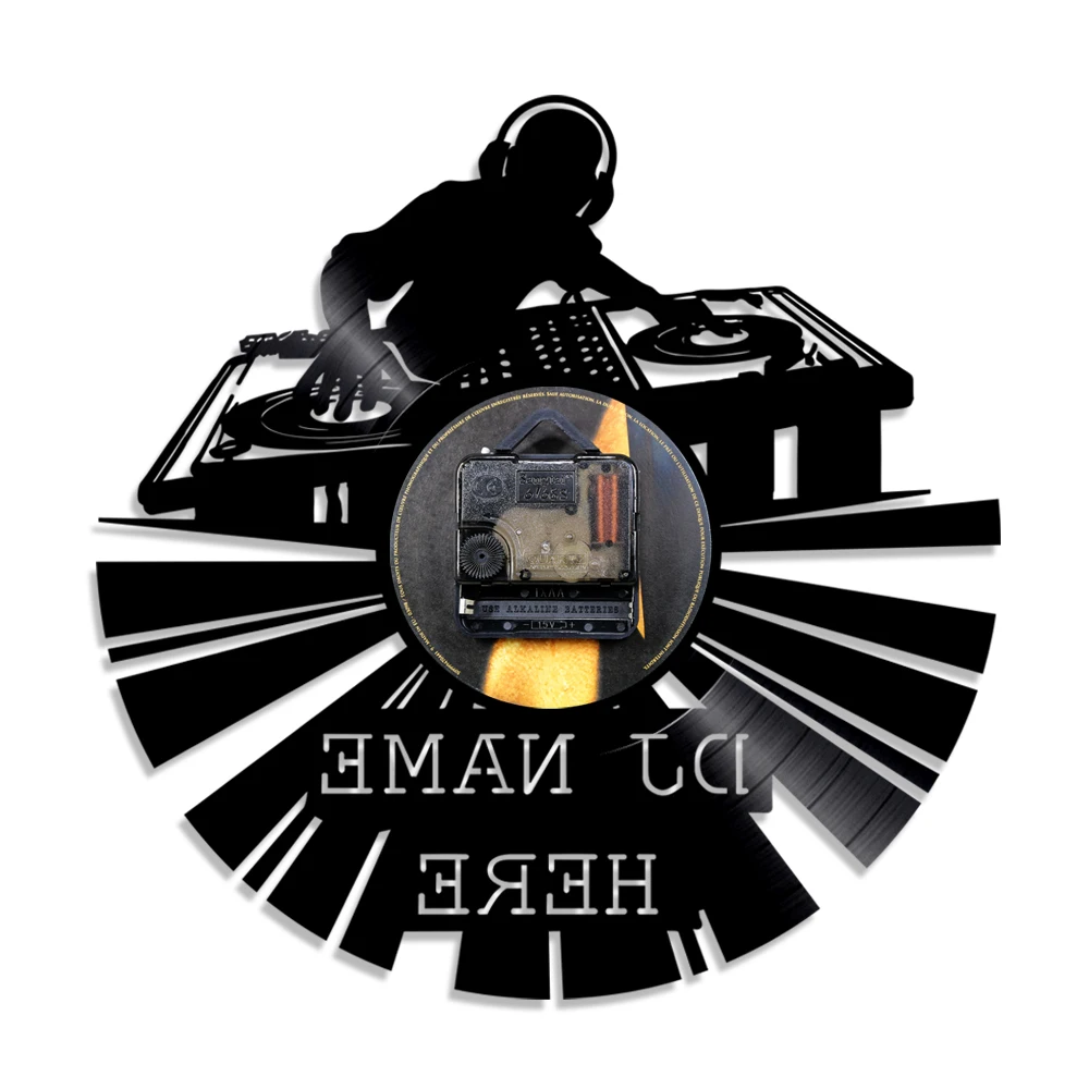 Настенные часы с именем диджея на заказ, винтажные музыкальные, с виниловой пластиной, с именем диджея, настенные часы с персонализированным именем, в стиле Рок н-ролл, музыка в ретро стиле, подарок