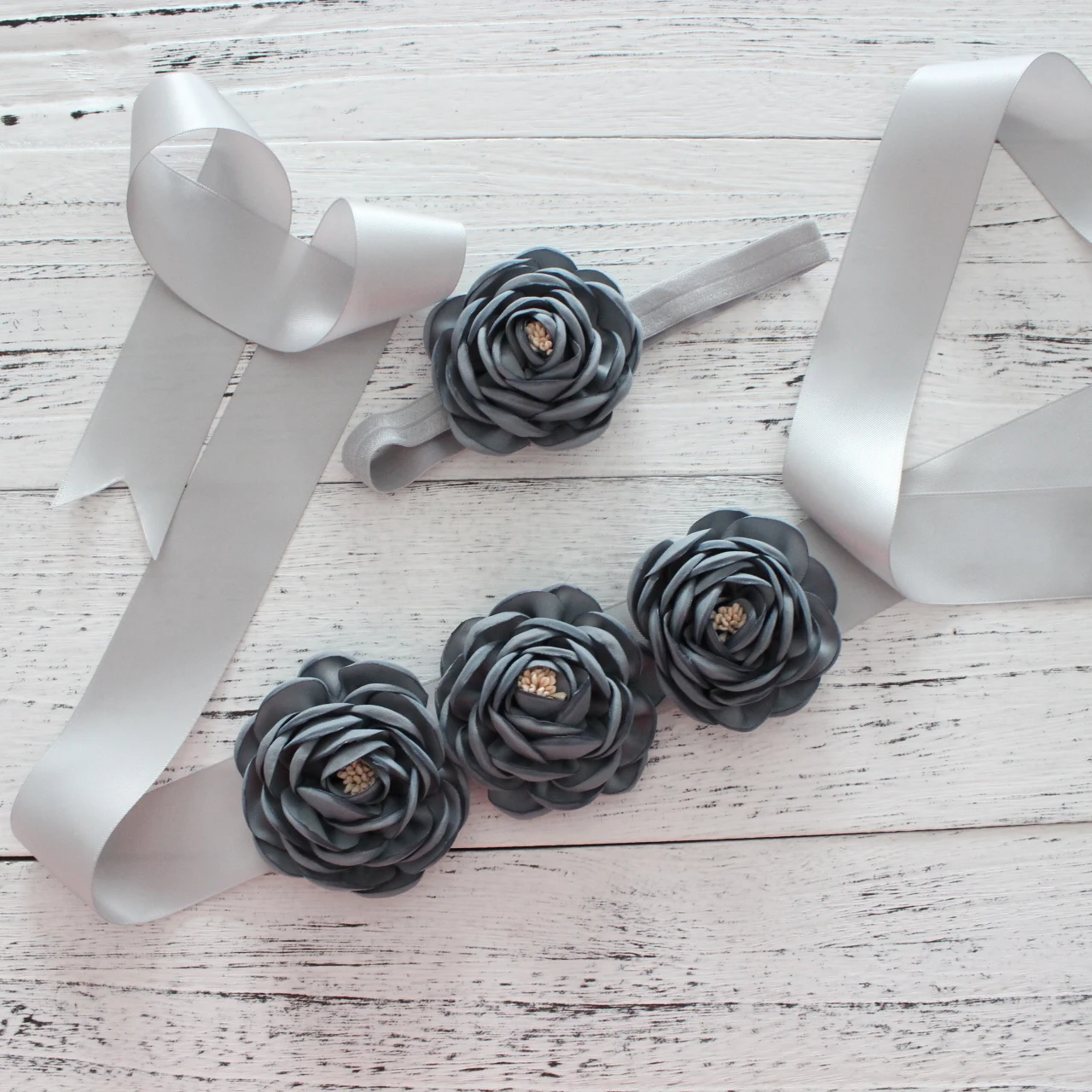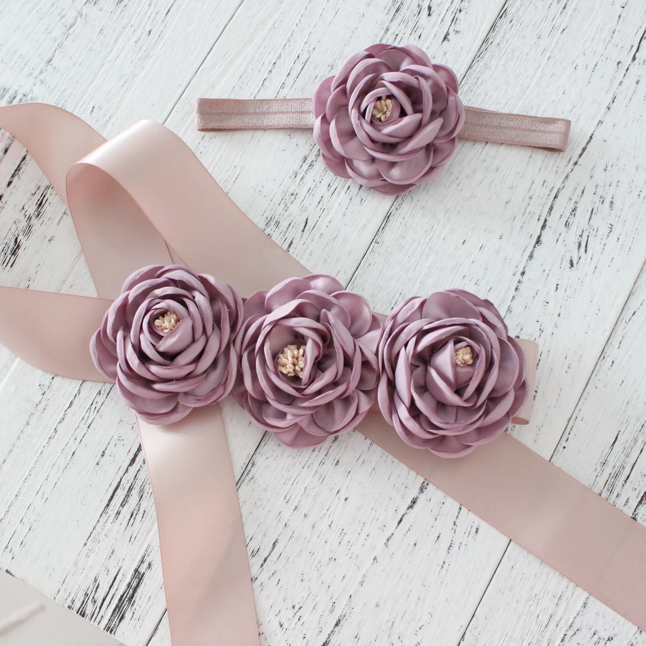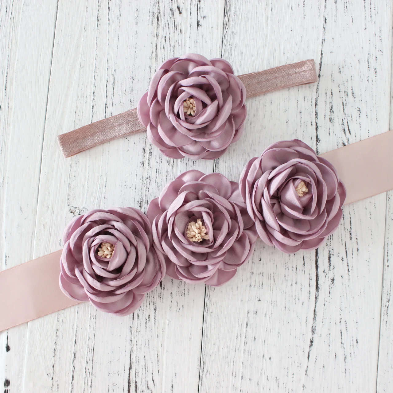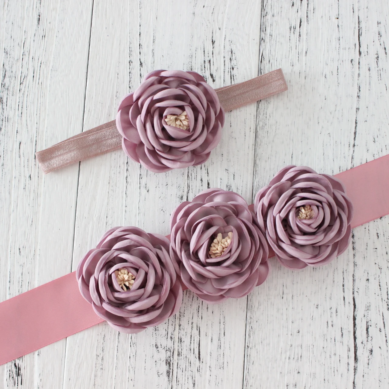 Пояс Женский, пояс с цветами для девочек, свадебный пояс, пояс с цветами, тканевый цветок, повязка на голову 1 комплект