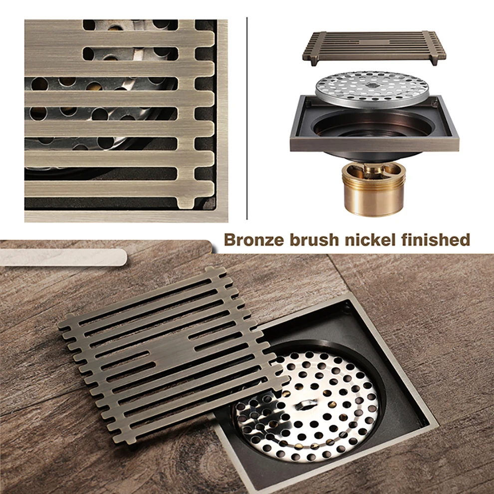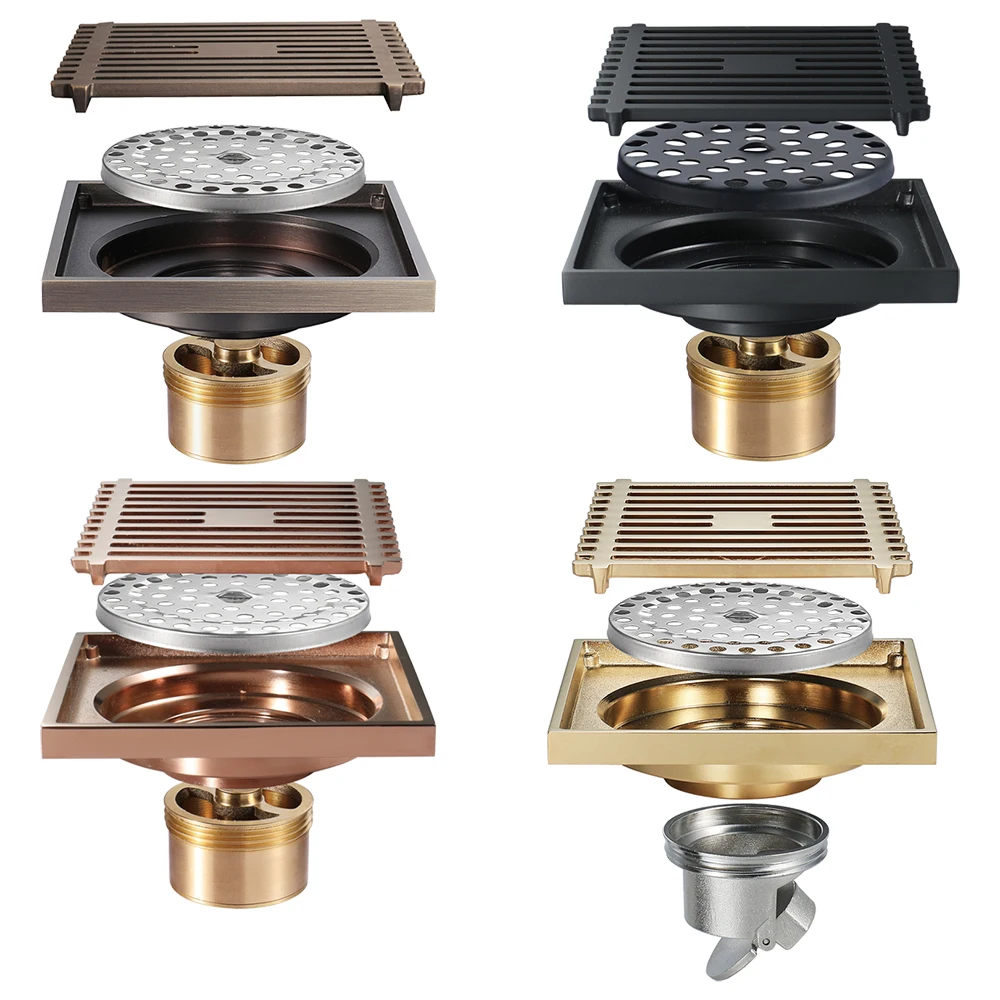 Античная латуньзолотойчерный цвет, 10 см квадратный душевой сток в полу для Семья Туалет Ванная комната общего разъемная застежка-молния Anti-запах очиститель