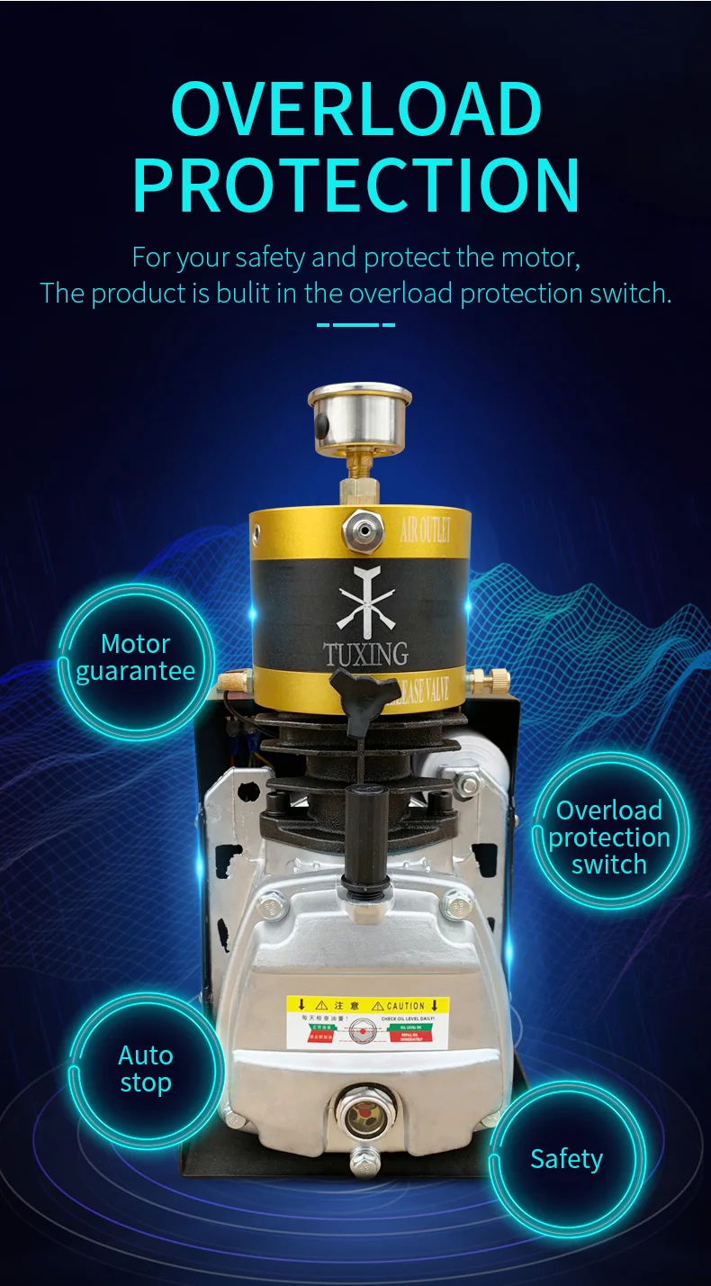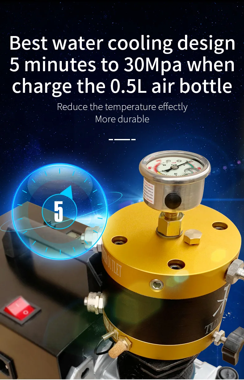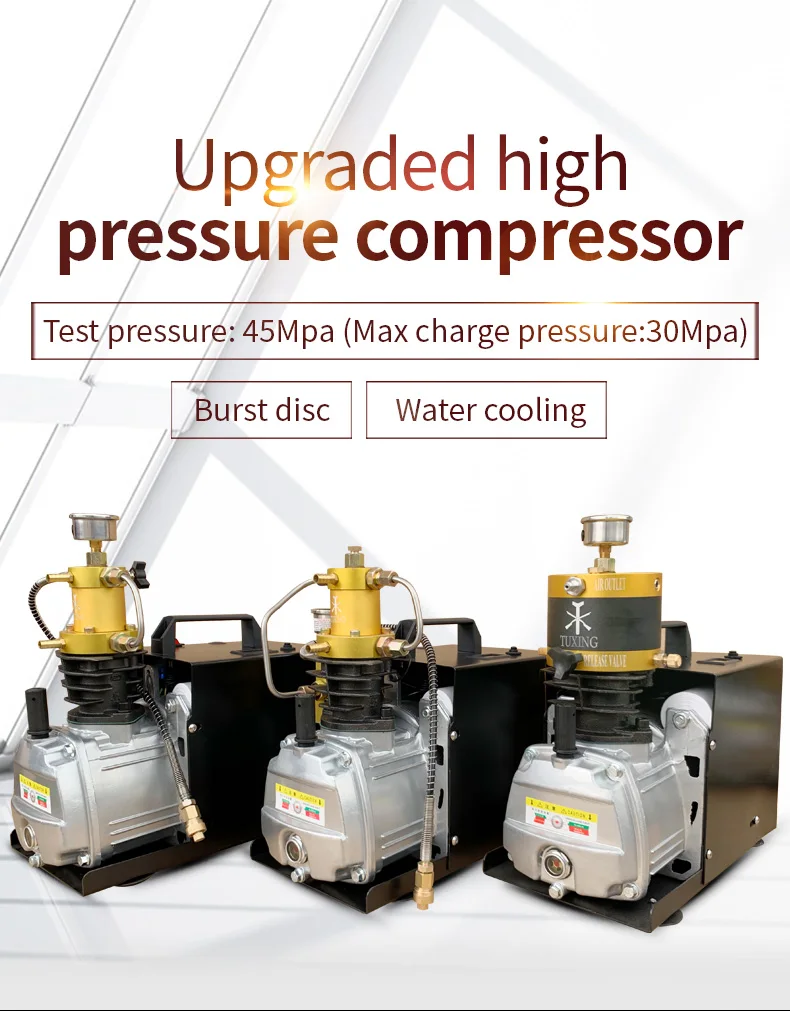 TUXING TXES012 4500Psi 300Bar PCP Компрессор высокого давления Электрический компрессор для пневматического винтовочного пистолета Установленное давление в воздушном баке