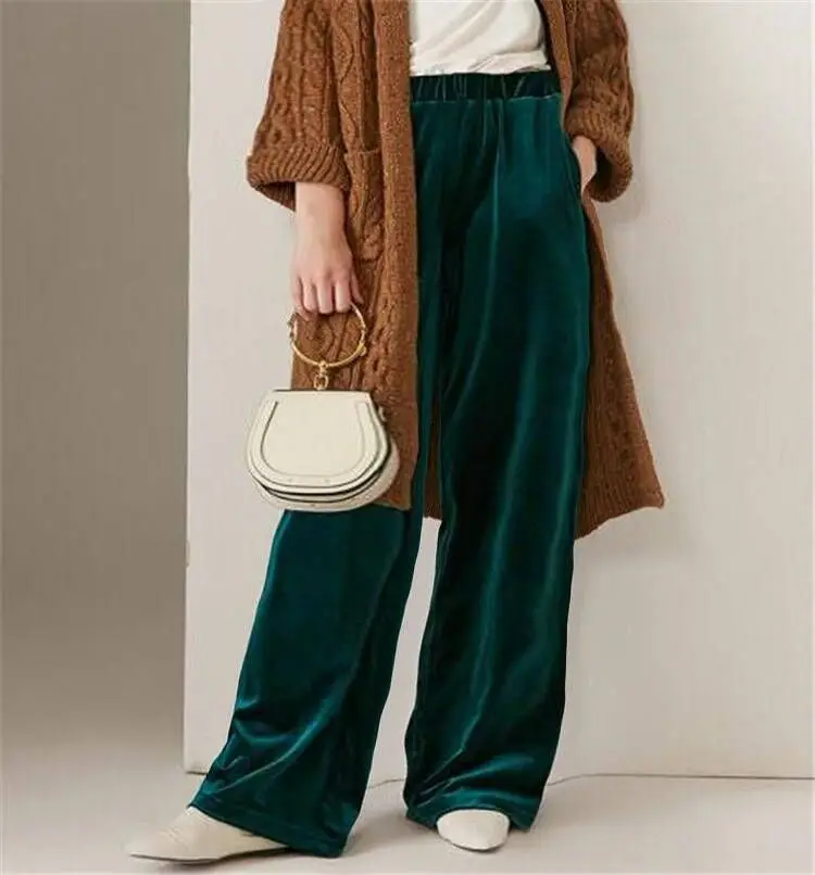 Новинка осени 2021, женские модные велюровые брюки с эластичным поясом, размера плюс L-5XL 6XL, прямые свободные бархатные длинные брюки