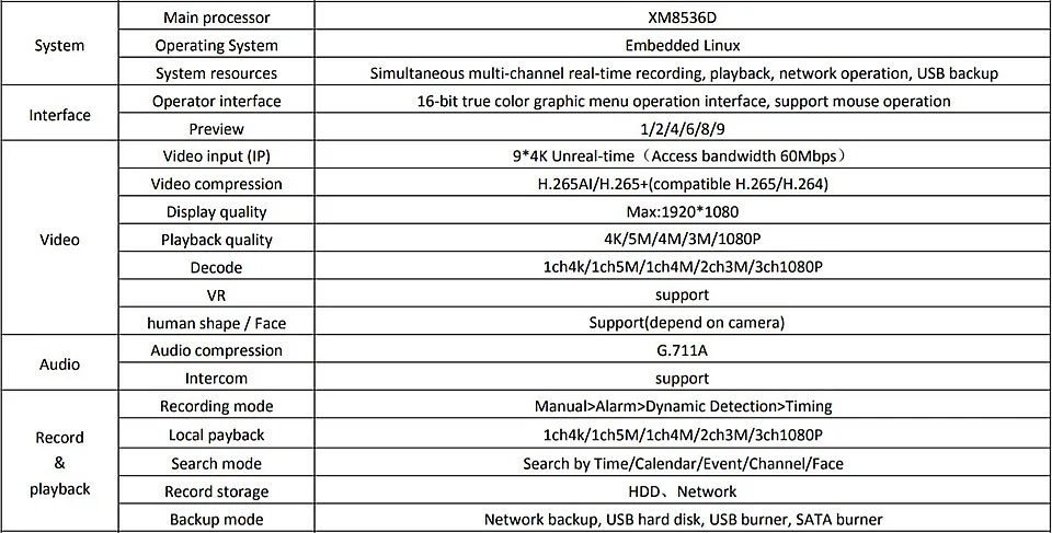 Видеорегистратор, H.265, 9 каналов * 4K, сетевой цифровой видеорегистратор, IP-камера, видеорегистратор XMEYE, HDMI, обнаружение движения с кабелем SATA, Onvif, P2P, 4 шт.