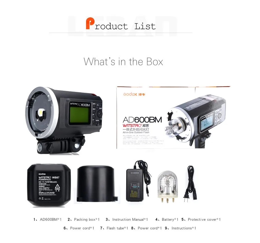 Godox Wistro AD600BM Bowens Mount 600W GN87 HSS 18000s Sync Outdoor Flash с 2,4G беспроводной системой X со встроенной батареей 8700 мАч