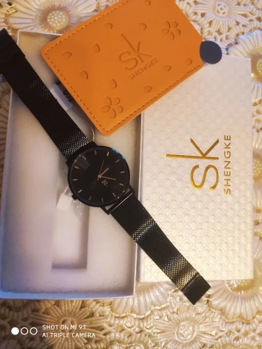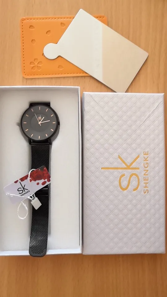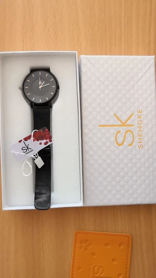 Часы Shengke женские кварцевые, модные ультратонкие Элегантные наручные, черные