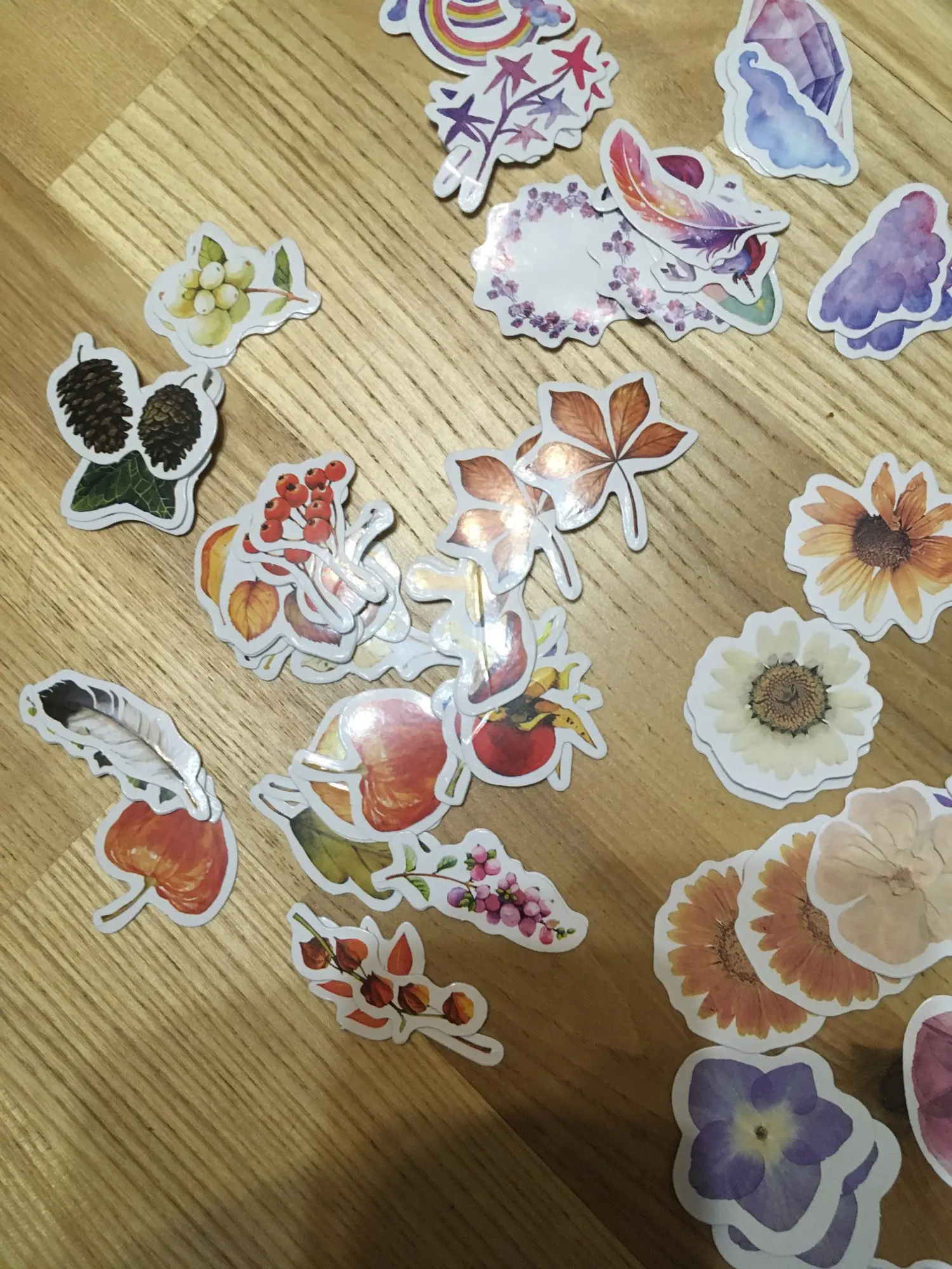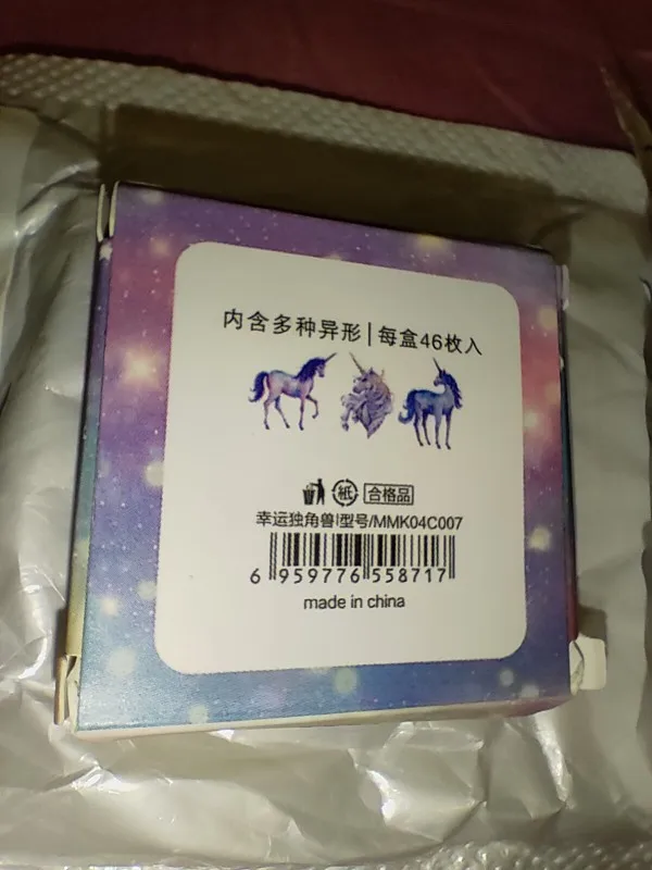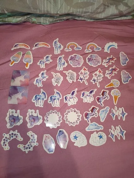 Заказ сделан 15.10.2020, пришла сборная посылка с кучей заказов 09.11.2020. Симпатичные наклейки, очень маленькие, почти всех по 2 штуки. На мой взгляд маловато единорогов, сами наклейки гораздо темнее, чем на фото продавца, не такие пастельные. Но всё равно красивые. Ровно 45 штук. Пришёл товар в пакете с пупыркой, к сожалению, коробочка помялась сильно.