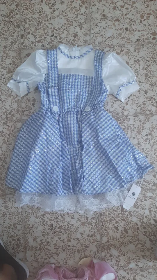 2017 Cute Blue Kids Girl Short Sleeves Polka Dots Plaid Newborn Baby Toddler Girls Halloween Costume Cosplay Party Dress 12 M-8Y