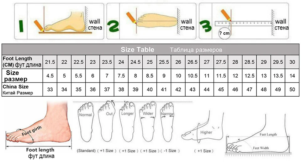 1. Размеры стопы могут отличаться от разных производителей, разных брендов, разных стилей, поэтому вам следует выбрать размер из точной длины стопы.