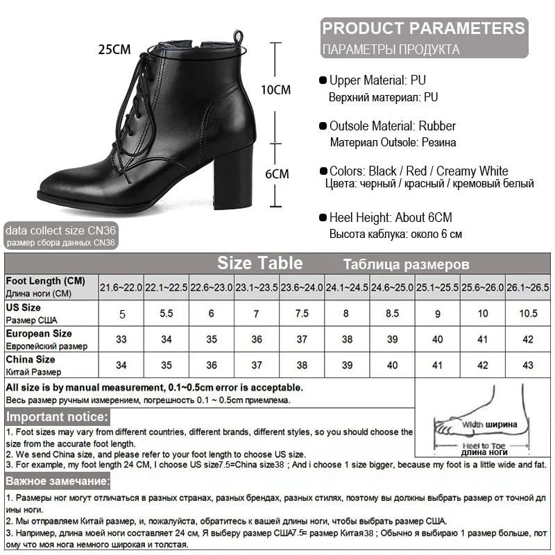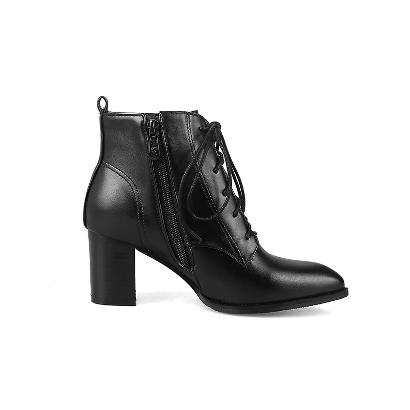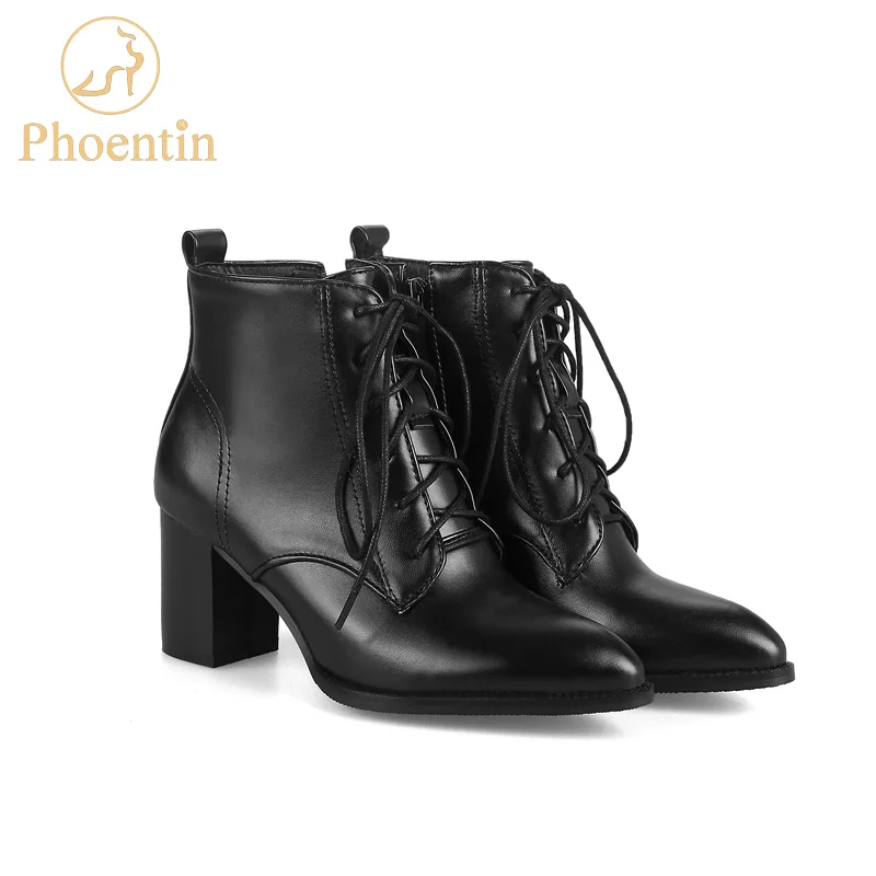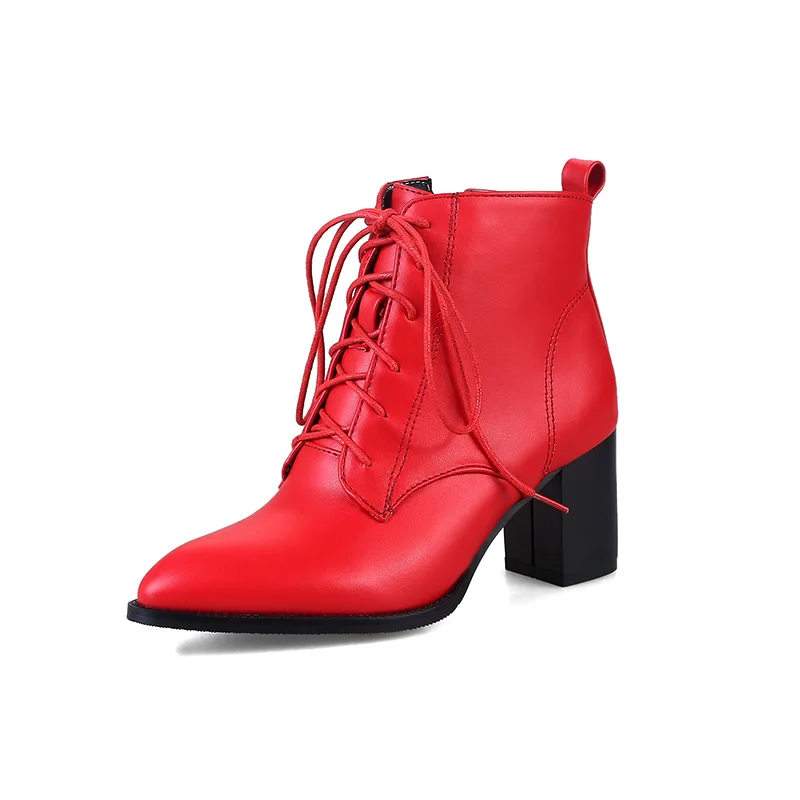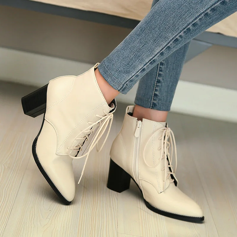 Женские ботильоны из искусственной кожи, на шнуровке, с квадратным каблуком 6 см, с острым носком, с боковой молнией, FT166, 2017