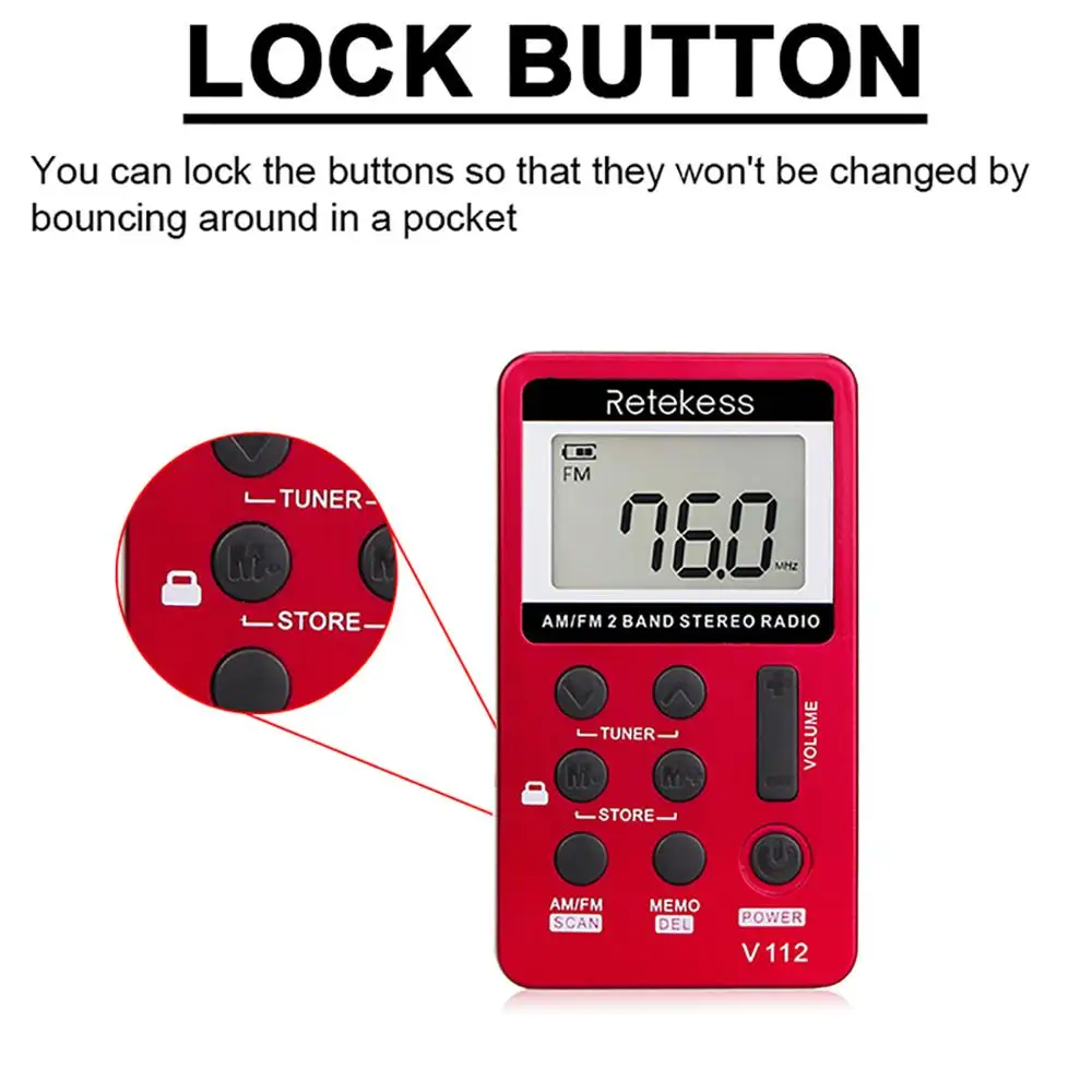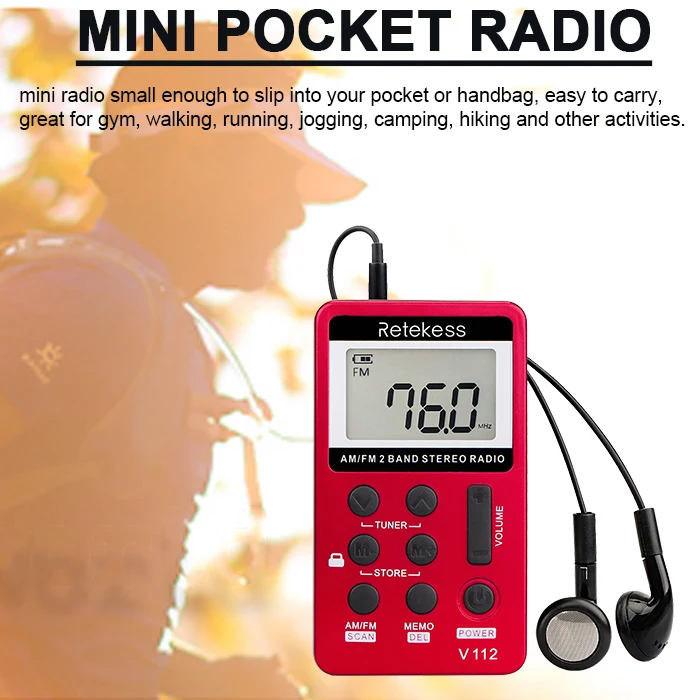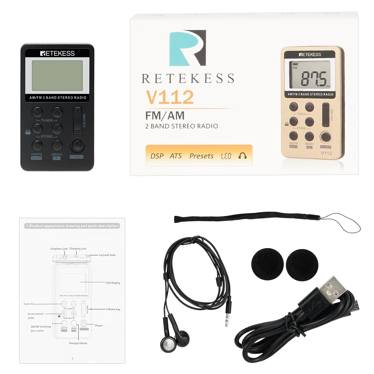 RETEKESS 10 шт. V112 Мини Радио Карманный AM FM 2 полосный музыкальный радиоприемник Bulit-in Динамик Наушники для спорта на открытом воздухе F9202C