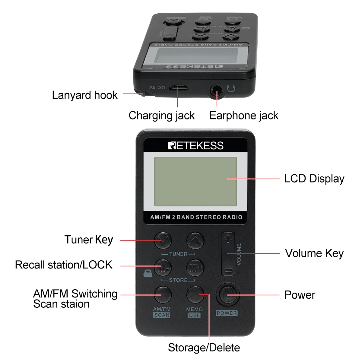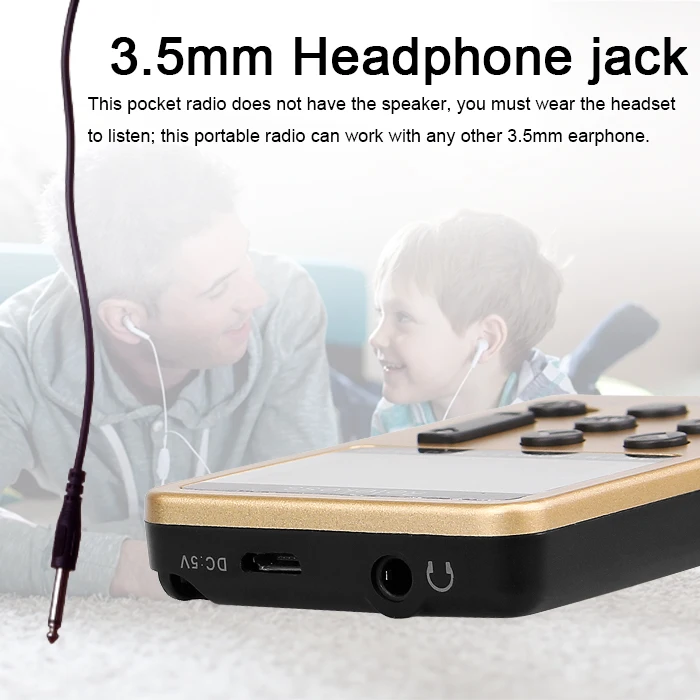 5 、При приеме радиостанций, пожалуйста, Расширьте кабель наушников, насколько это возможно, для лучшего эффекта. В этом карманном радио нет динамика, вы должны носить гарнитуру, чтобы слушать; Это портативное радио может работать с любым другим 3,5 мм наушником.
