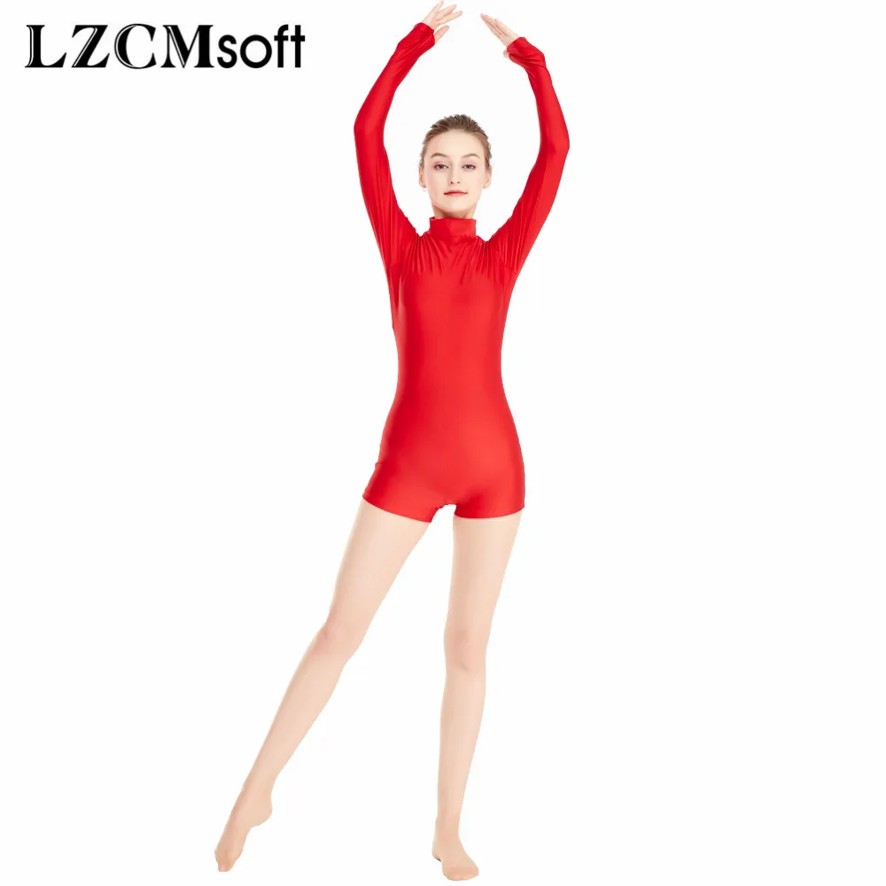 LZCMsoft взрослых высокая горловина Biketards с отверстие для большого пальца, молния сзади, спандекс, свитер с длинным рукавом и комбинезон Для женщин купальник для балета, танцев