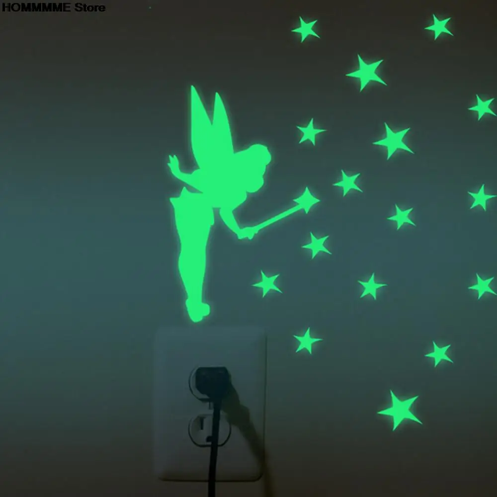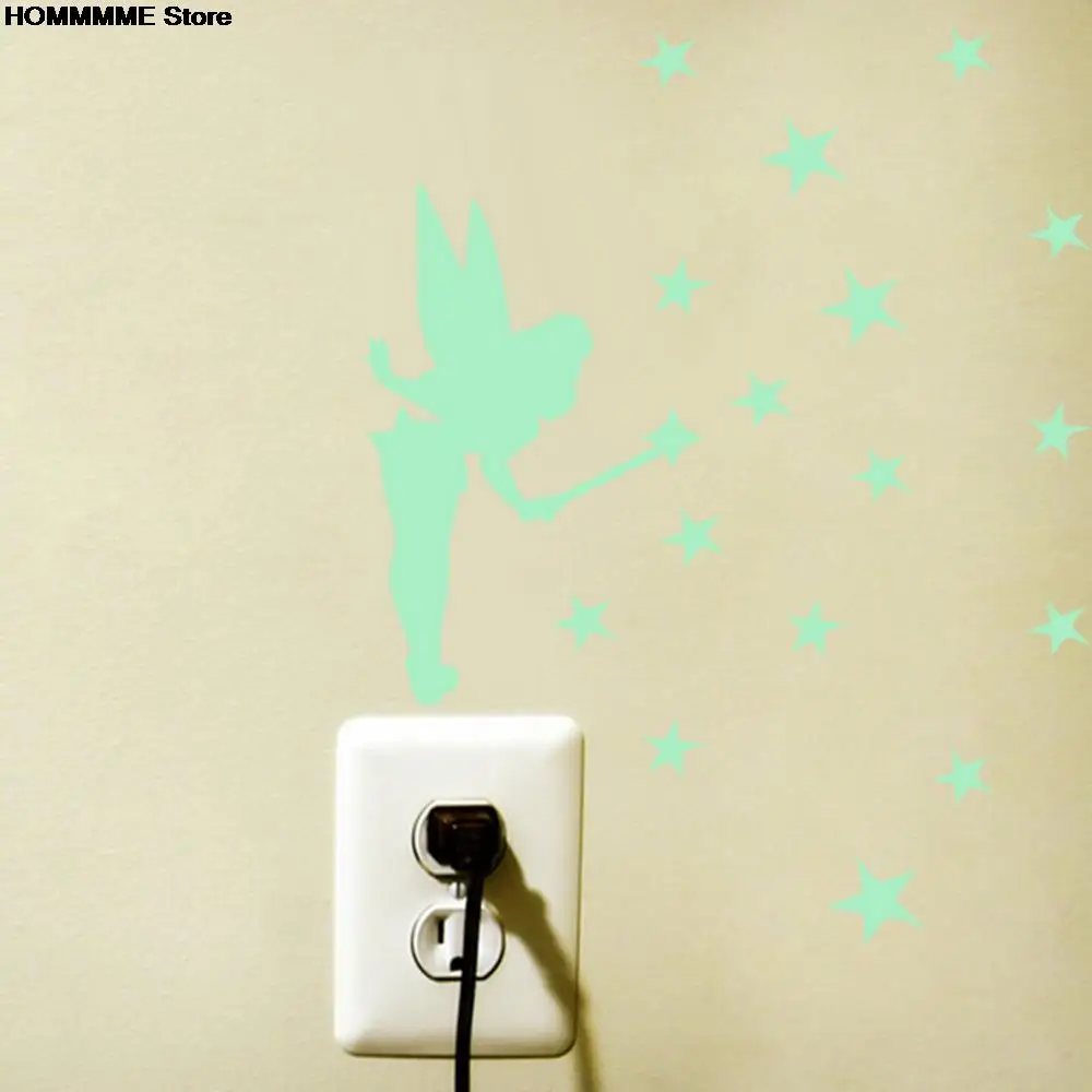 Флуоресцентная акриловая наклейка на крылья со светящимися в темноте звездами и блестками, F8 Tinker Sit Bell, переключатель на стену с наклейками