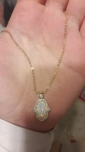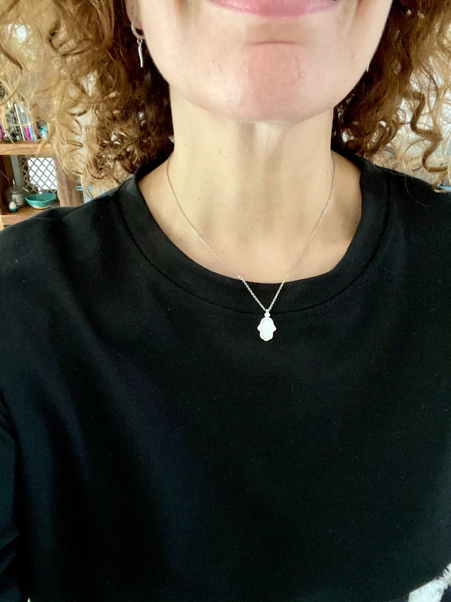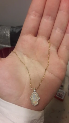 Мода 2017 турецкий Хамса рука кулон ожерелья для женщин нежное изящное Золото Серебро Цвет Белый огненный опал камень ожерелье