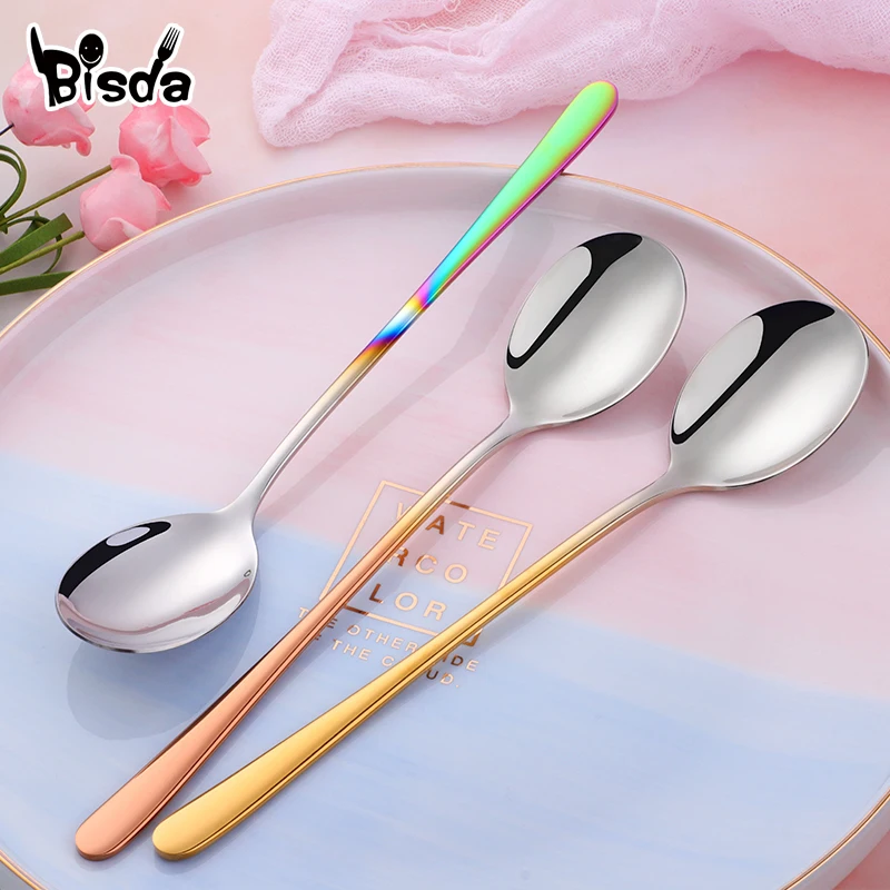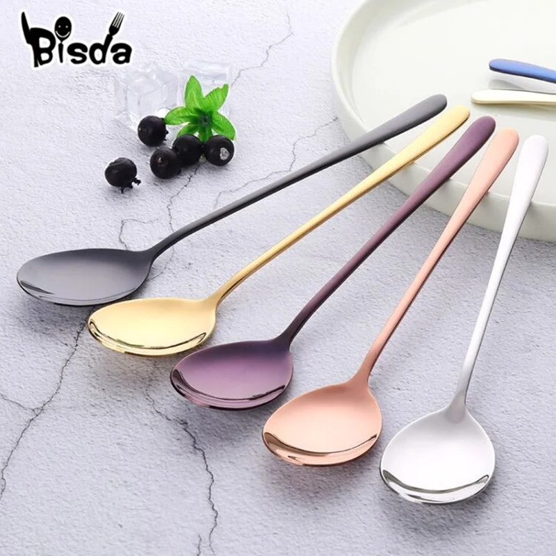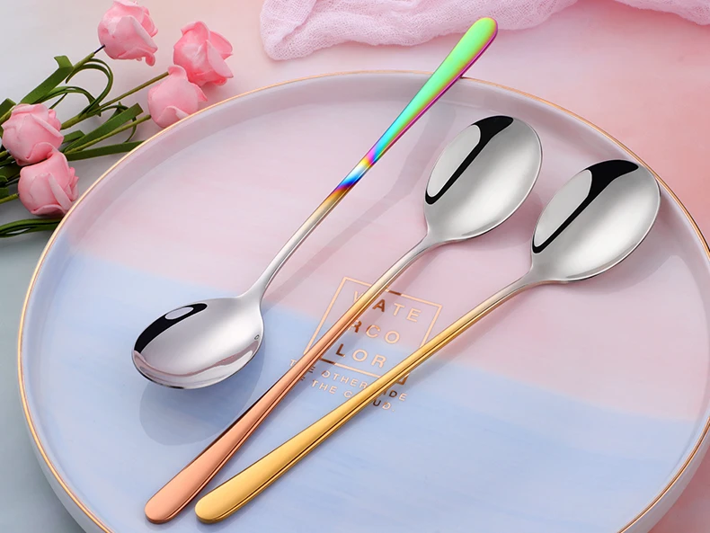 Ложки из нержавеющей стали, 8 цветов, с ложка с длинной ручкой ложкой для супа из розового золота, для мороженого, обеденные ложки, посуда для рисасалата