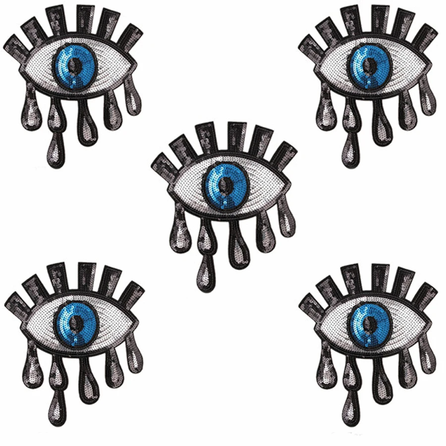 Заплатки для одежды, блестящие, с большими глазами, мотивы вышивки, 5 шт.