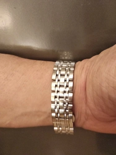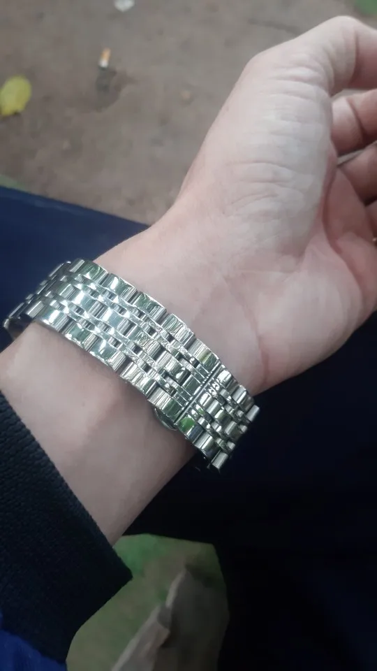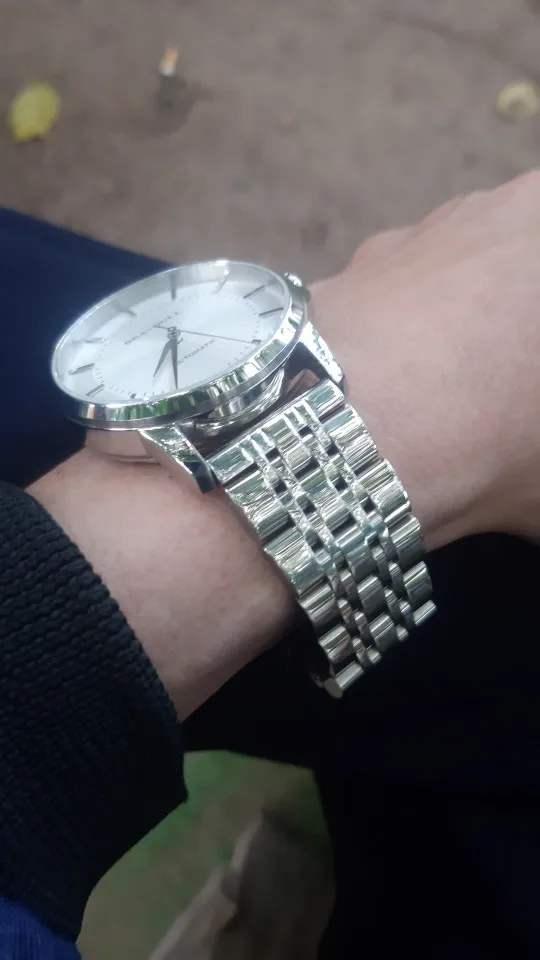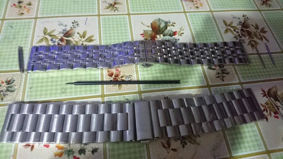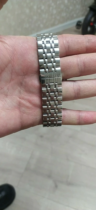 Шикарный браслет. Подошел как влитой. Полировка на высоте- как зеркало , на швейцарских часах не отличишь что браслет китайский. Звенья литые , легко можно настроить длину под себя. Застежка литая, не штамповка. Инструмент и запасные шпинделя в комплекте. Класс. За 680 рубиков идеал. Берите.
