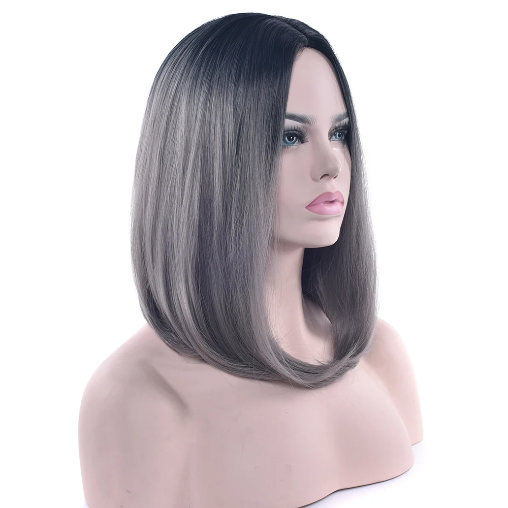 Soowee искусственные волосы черно-красные волосы Омбре короткие прямые волосы боб парики из высокотемпературного волокна косплей парик для женщин