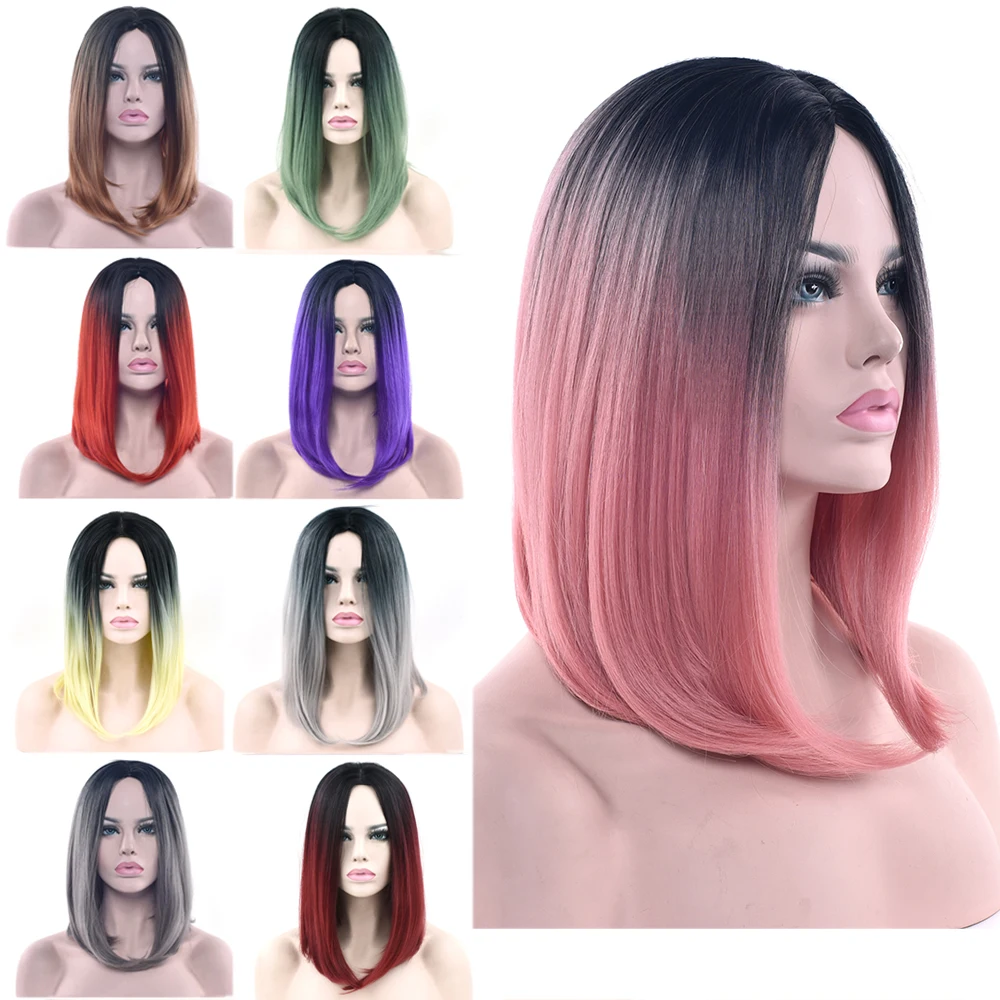 Soowee 11 цветов черно-розовые волосы Омбре прямые парики боб синтетические волосы короткие волосы для вечеринки косплей парик для женщин