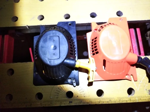 облегченный старт, 2 пружины, качество хорошее, на пилу установил, работает хорошо, но заводить обычным стартером на весу удобнее, если заводить с земли то с этим удобнее.