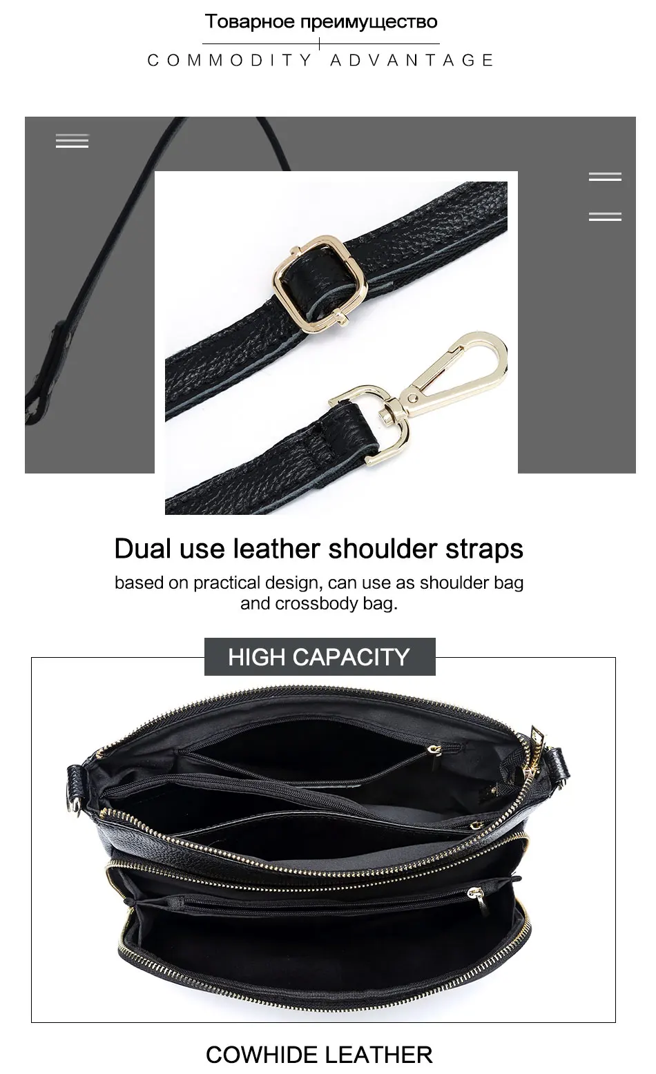 Zency элегантная женская сумка из 100% натуральной кожи, женская сумка через плечо, сумка-мессенджер, модная сумка черного цвета, высокое качество
