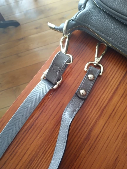 На фото сумка выглядит лучше , на самом деле цвет грязно серый , фурнитура качественная , но ремень длинный в отличии то короткого, с УВ изнанки подшит сутажем, что портит сумку , а короткий весе кожаный, если бы увидела всё это - вряд-ли бы купила.
