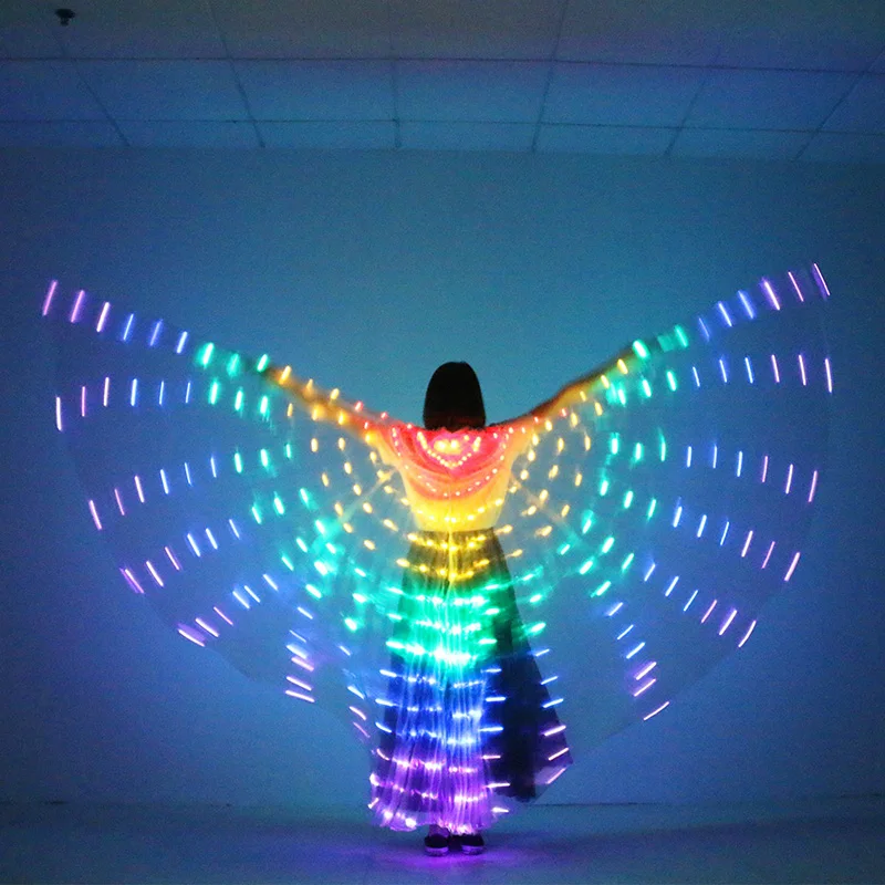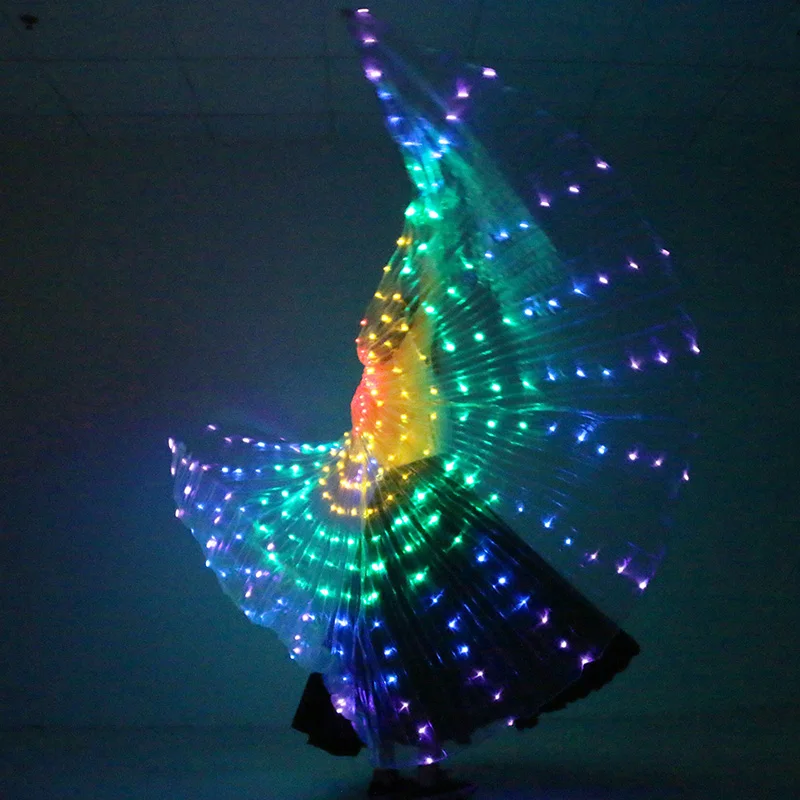 Реквизит для сцены, женский аксессуар для танцев, DJ светодиодный светильник для танцев с крыльями, светодиодный костюм с крыльями для танцев, радужные цвета с палочкой