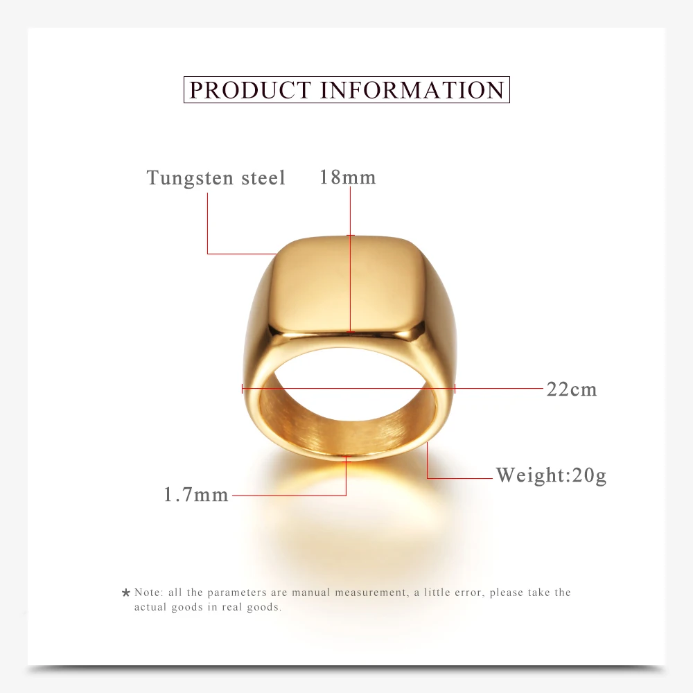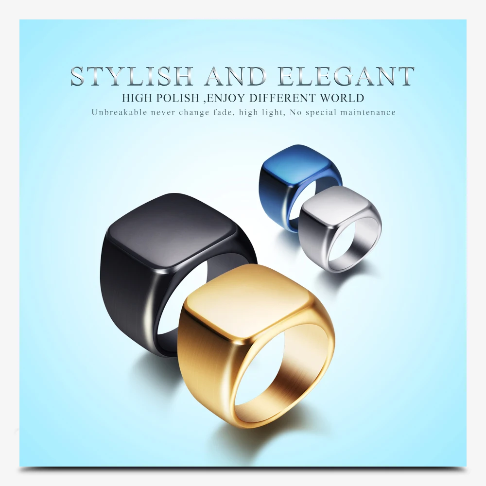 Новые модные квадратные широкие кольца-вывески, модное мужское кольцо на палец, титановая сталь, ювелирные изделия
