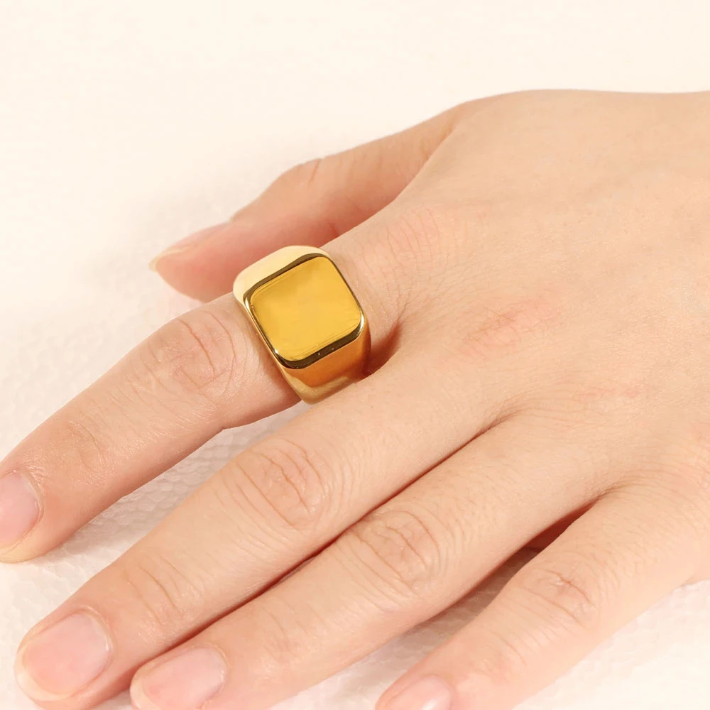 Кольцо FDLK мужское шириной, печатка в простом стиле, гладкое, квад...