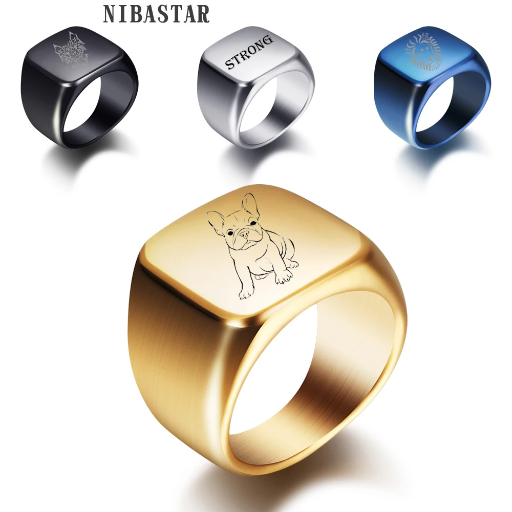 Персонализированные мужские кольца перстни, гравировка из нержавеющ...