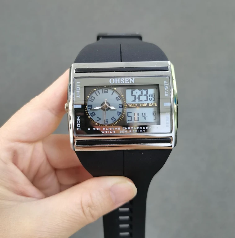 Часы OHSEN AD0518 с резиновым ремешком, белые, черные, для цифровых кварцевых мужских часов