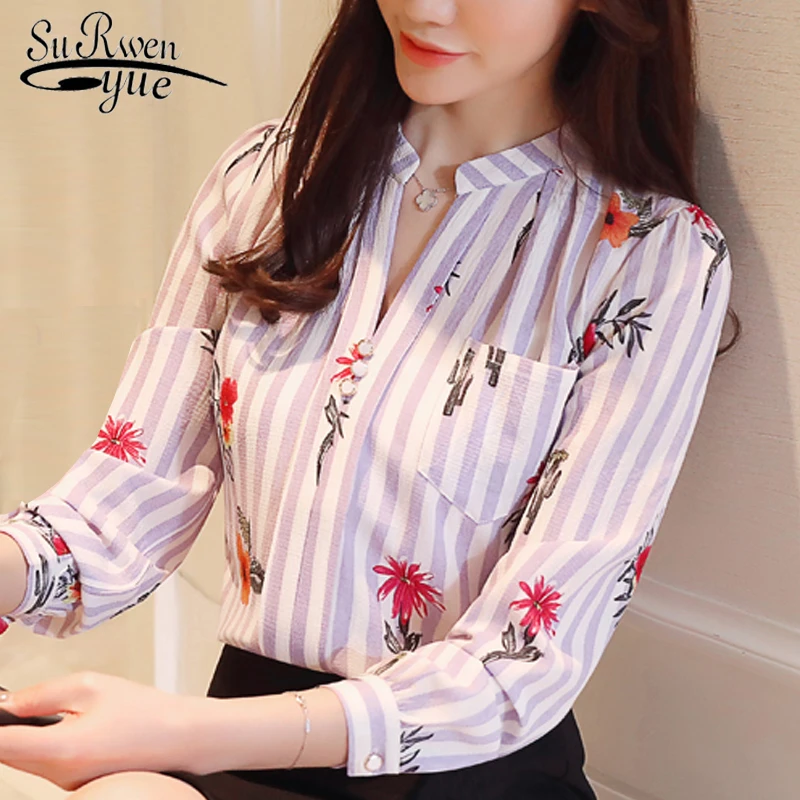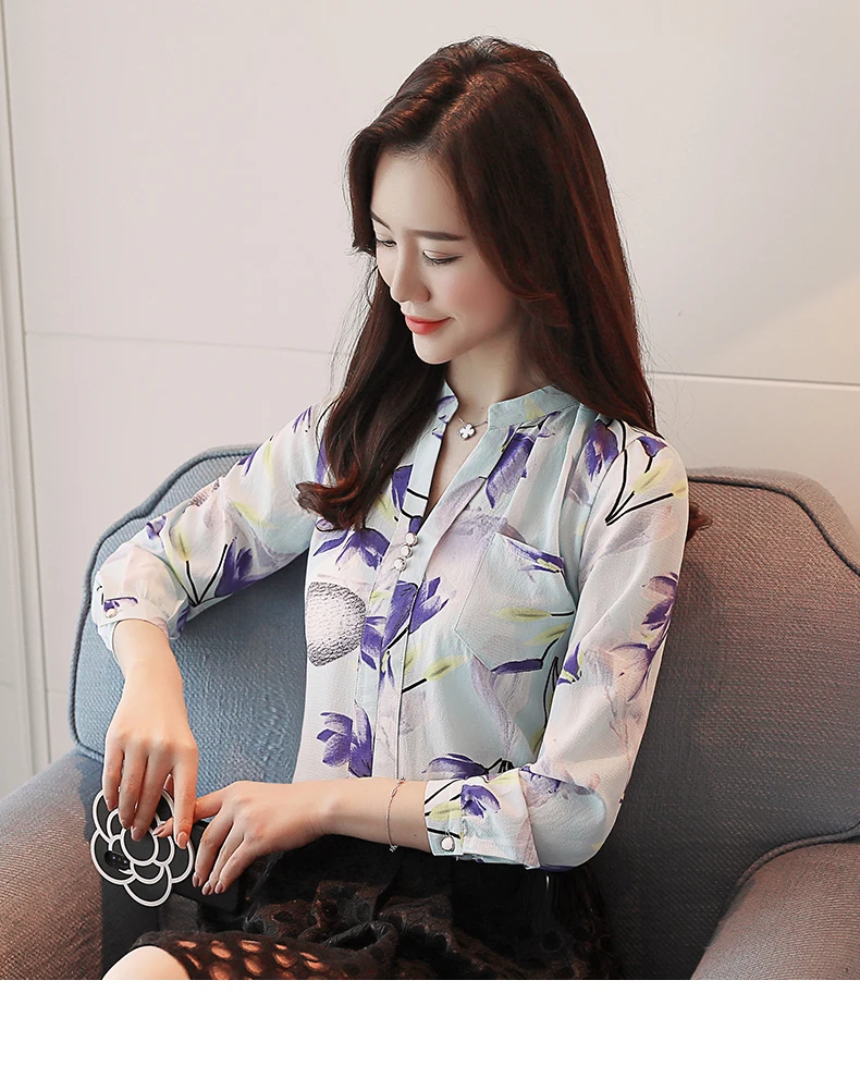 Рубашка женская шифоновая с длинным рукавом и цветочным принтом, Z0001, 2021