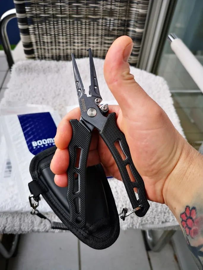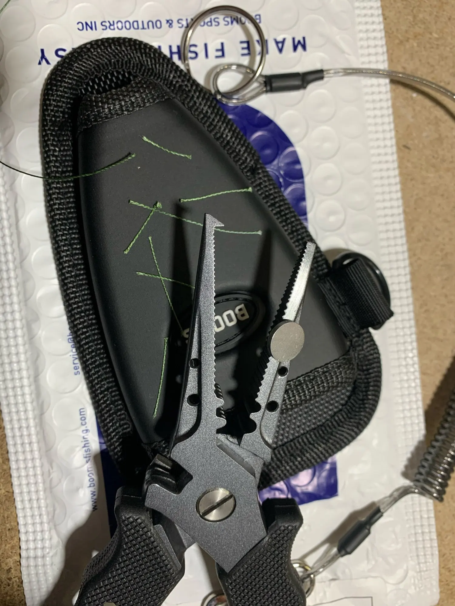 Долго выбирала раболовные плоскогубцы, это - оптимальный вариант. Взведённая пружина внутри, облегчённая рукоять с покрытием, обжимки, носик для колец, кусачка, отверстия для крючков, при этом это цельная сталюга, а не алюминий с накладками, который погнётся. Отдельное внимание удобному чехлу, сидят в нём отлично! Правильное крепление, отличная прошивка и запаянные концы ленты - не пойдёт бахромой! Инструмент при этом довольно лёгкий, рука не устаёт. Есть мелкая потёртость на щёчке, но, думаю, не критично. Такие же чуть дешевде видела в другом магазине, но там более дешёвый чехол полност тканевый на клапане, выбрала эти.