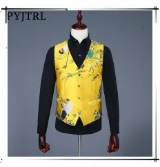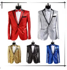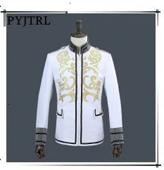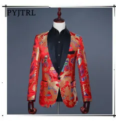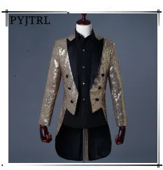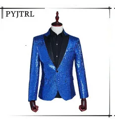 PYJTRL мужские золотые, серебряные, красные, синие, черные блестящие приталенные костюмы для сцены, певицы, выпускные платья, костюм для свадьбы, костюм для жениха, куртка