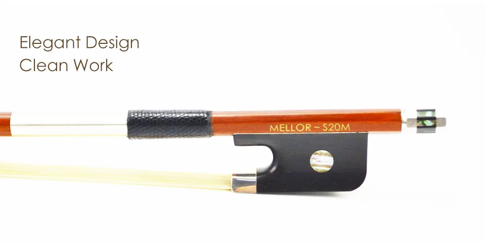 S20M-это великолепная модель с бантом на уровне меллор. Эбеновая лягушка, украшенная натуральным абалонным ракушком, показывающим классические глаза. Pernambuco-это отличный материал для создания бантов. Мы выбираем 4 звезды pernambuco для модели. Круглая палочка, яркий коричневый цвет. Бант крепкий и устойчивый, он обеспечит вам отличный баланс, теплый и чистый звук. Премиум монгольский конский волос-хорошо подобранный натуральный конский волос, отличное сжатие, легче канифоли и более прочный. Очень хороший винт. Рукоятка из овечьей кожи. Изящная намотка из чистого серебра. Бант полностью смонтирован из серебра и полностью ручной работы мастером.