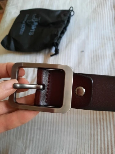 Мне понравился ремень. Сделан очень аккуратно, Да, похоже не натуральная кожа (а чего ожидать за такие деньги), но так он хорошо сделан, ничего лишнего, просто и красиво! Пяжка крепко сидит, не болтается, ну очень нравится этот ремень. Кому принципиально, обратите внимание: Пряжка 7х4.8 см (у продавца указано 7.5х5.5)
