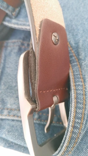 Хорошее производство. Соответствует описанию, за исключением того, что металлическое кольцо не прикреплено непосредственно к коже ремня, но оно удерживается концом искусственной кожи, и это позор, потому что со временем это будет слабый момент. Также можно отметить, что ремень сделан не из 100% кожи, а из 2 слоев кожи с слоем листа сандалии. Почему...?
