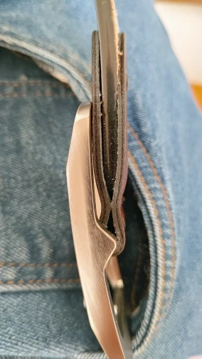 Musiałem skrócić trochę paska i wg. mnie tylko część wewnetrza jest wykonana ze skóry. Po przecięciu widać dwie warstwy materiału. Część zewnetrzna najprawdopodobniej jest ze skóry ekologicznej. Ale generalnie wyglada OK i zobaczymy ile posłuży.