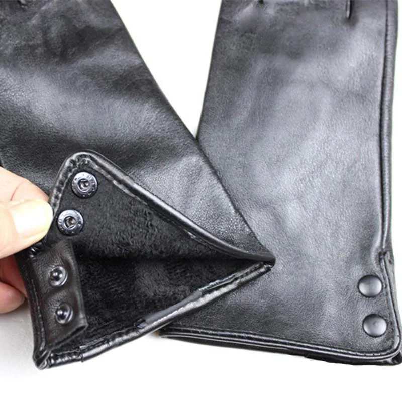 Зимние теплые кожаные перчатки, женские модные стильные тонкие шерстяные осенние уличные велосипедные перчатки с толстой бархатной подкладкой и пуговицами