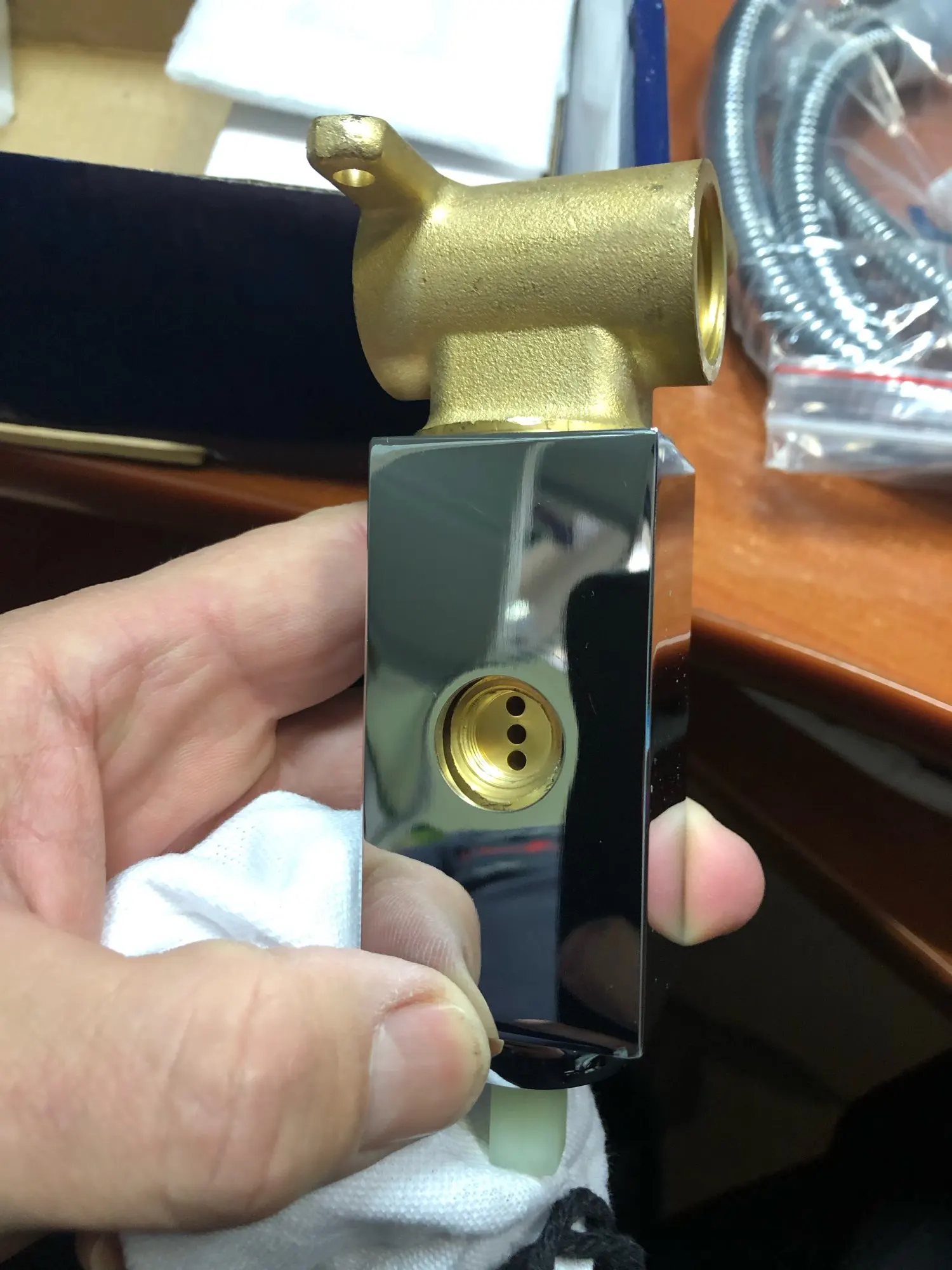 доставка быстрая до двери.качество супер.очень тяжёлый латунь.продавцу огромное спасибо.рекомендую.все четко запакованно вмятин нет 5 твердая