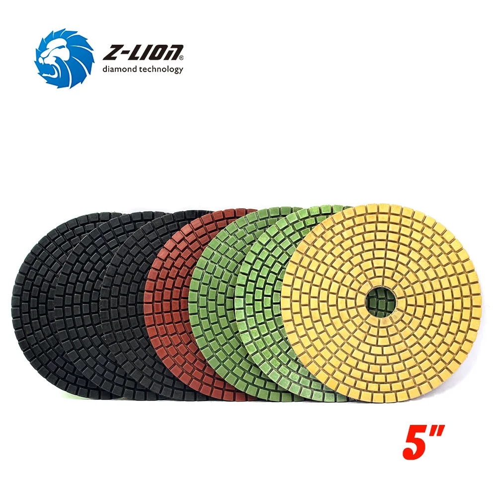 Гибкий Алмазный полировальный диск Z-LION 3 шт., 5 дюймов, 125 мм, алмазный шлифовальный диск для влажной шлифовки камня, гранита, мрамора, керамической плитки