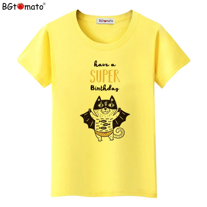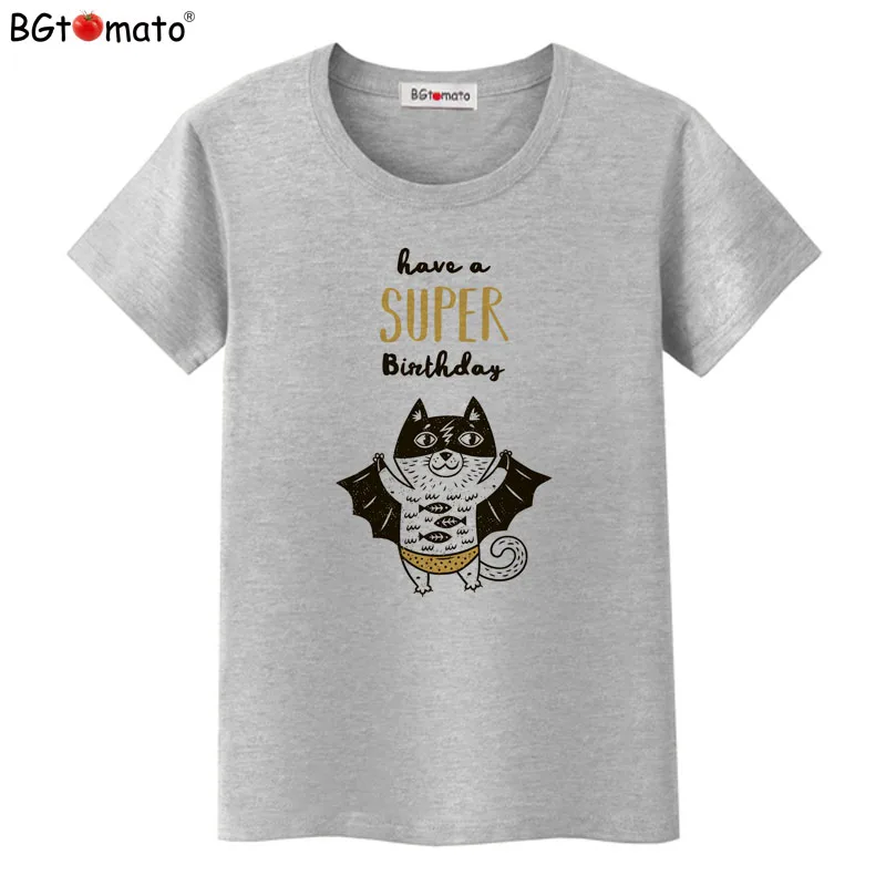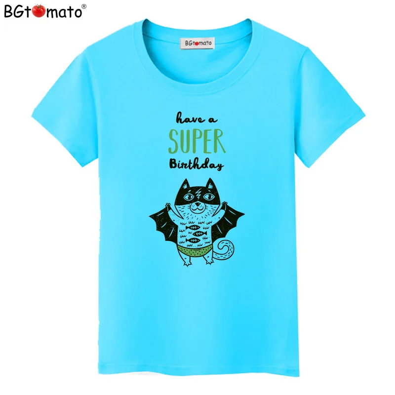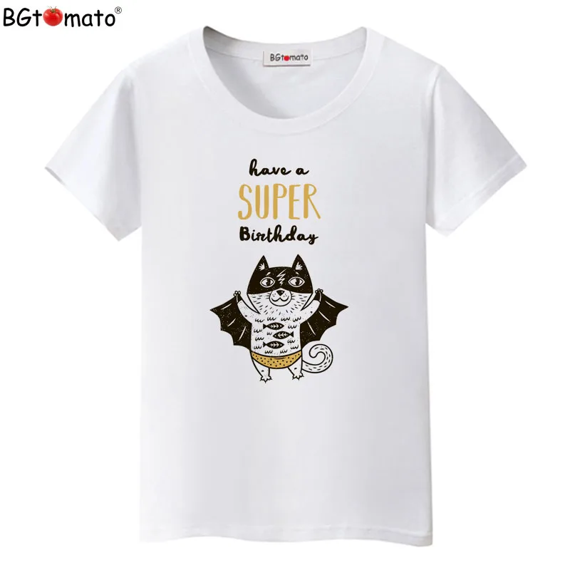 Футболка BGtomato с супер кошкой, Забавный Топ, новый стиль, кавайная футболка, Женская дешевая распродажа, новая футболка в стиле Харадзюку, женская футболка
