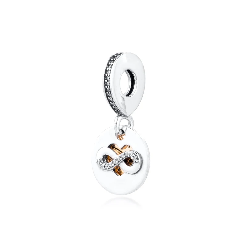 DIY подходит для браслетов Pandora Beads, подвески в виде сердца бесконечности с Реальным золотом 14K, 100% детской, серебряные ювелирные изделия, бесплатная доставка