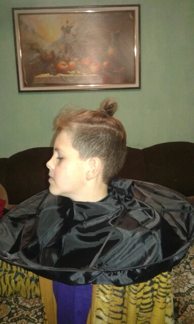 Отличная накидка! Хороший материал, с аккуратным швом по бокам и липучкой для застёгивания воротника, волосы на нём не задерживаются, а резко соскальзывают прямиком на пол! Спасибо продавцу!!! :))